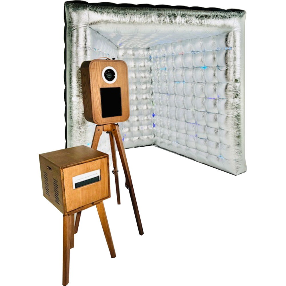 Designed to elevate events, celebrate with the iPad Photo Booth Package from Airbooth. Finished with a sleek and classic red oak finish, this photobooth complements a variety of venues for special occasions or work events. The inflatable V-shaped design, complete with a built-in inflatable blower, allows for quick and hassle-free setups for photographing people on-the-go. Compact, lightweight, and easy to assemble, the photobooth's sleek design discreetly hides the separately available iPad, camera, and photo printer to offer guests a classic photobooth experience with elevated images. The kit includes a remote-controlled LED light system for customized light to capture flattering memories.