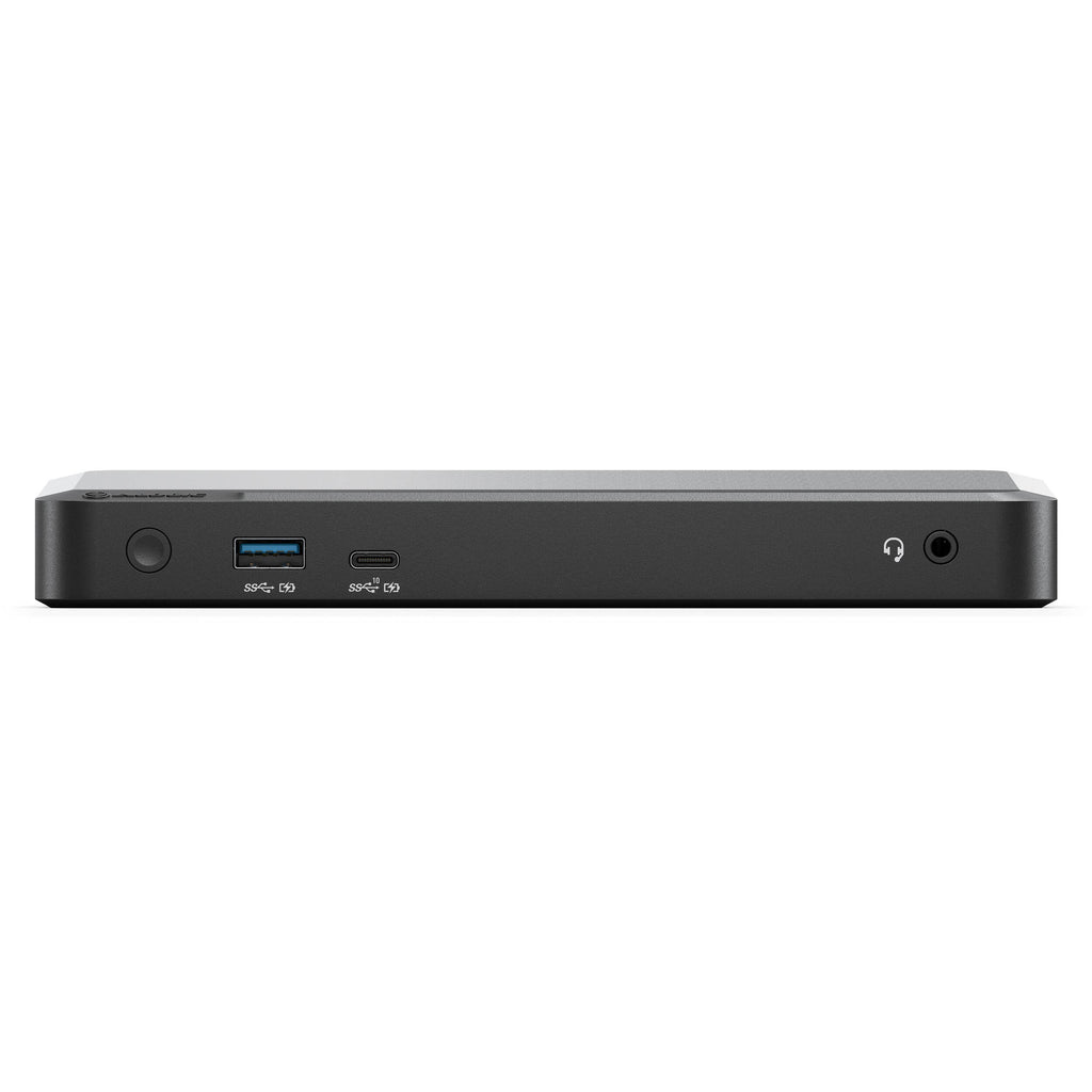 An included USB-C cable connects to your host device, instantly expanding your device's capabilities and giving you up to 100W of Power Delivery keeping your notebook charged while in use. Two DisplayPort video-out ports enable you to connect two monitors with support for resolutions up to 3840 x 2160 with a 60 Hz refresh rate, giving you a clear and smooth picture suitable for work and play. Three USB-A 3.2 Gen 1 and one USB-C 3.2 Gen 2 port give you data transfer speeds up to 5 and 10 Gb/s, allowing you to quickly move data to and from external storage and flash drives. Take part in conference calls and listen to your streaming media privately with a single 3.5mm audio jack. An RJ45 Ethernet port is available, allowing you to use a wired network connection for quick uploads, downloads, and cloud access. Additionally, a lock slot supports a wide range of security devices, preventing unauthorized users from removing the dock from your desk.