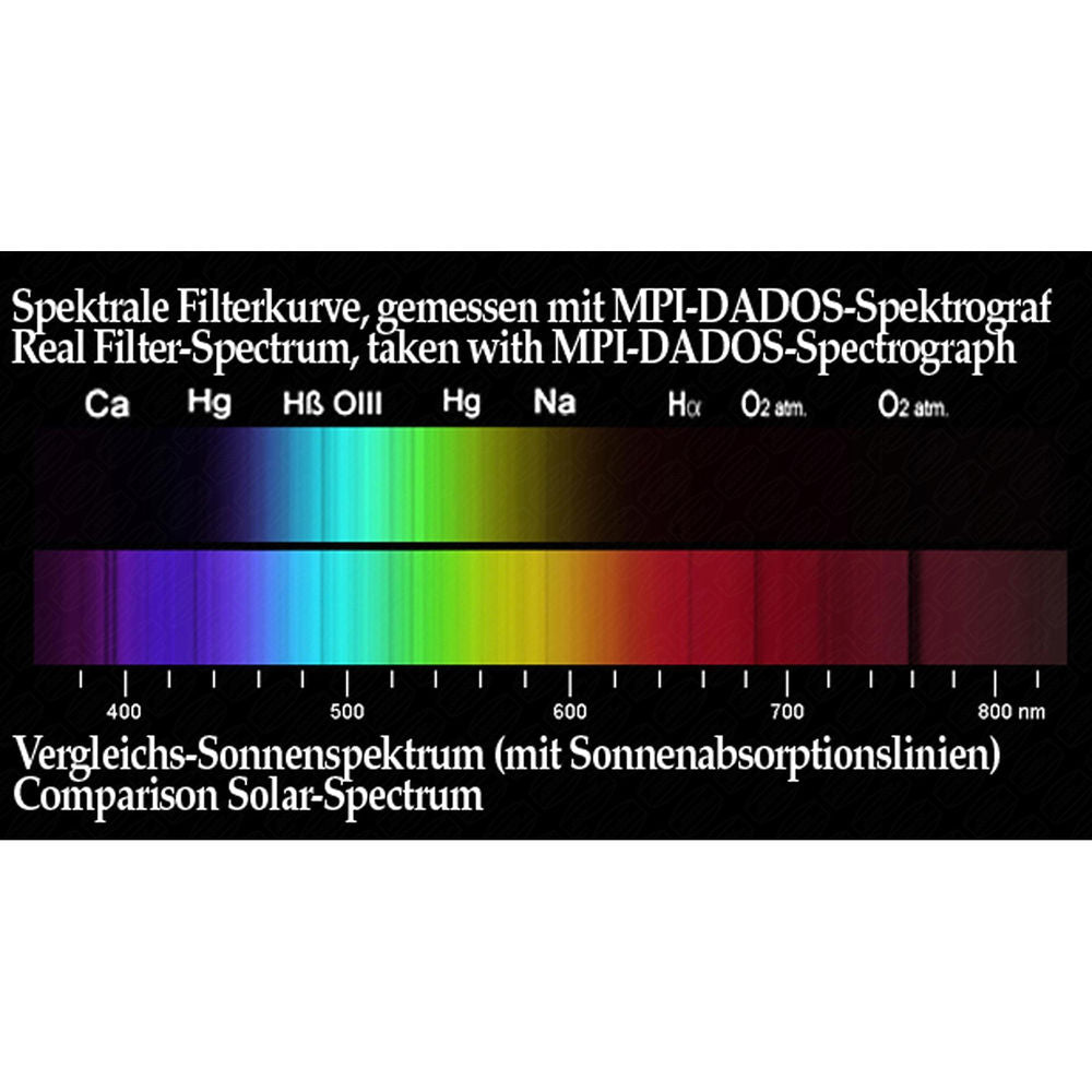 Centered on the 500nm wavelength, the Alpine Astronomical Baader Green Colored Bandpass Eyepiece Filter can be used by itself or stacked with other filters to enhance your observations when viewing the moon or planets such as Mars, Jupiter, and Saturn. The optical glass filter is planeoptically polished and treated with seven-layer Phantom Group anti-reflection multi-coatings to improve contrast and clarity while eliminating reflections, scattering, or image dimming. Holding the filter is an black anodized aluminum frame made to fit standard 2" eyepieces and other accessories such as diagonals and Barlows.