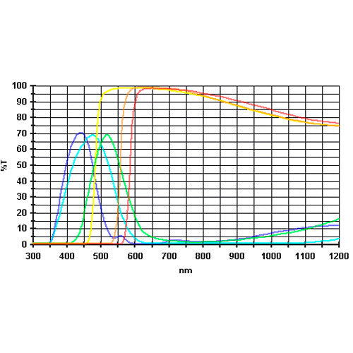 With the Alpine Astronomical Baader Colored Bandpass Eyepiece Filter Set you get all six of their filters for enhanced viewing and imaging the moon and planets. All filters in this set are made to fit standard 1.25" eyepieces and other accessories such as diagonals and Barlows. Each of the filters�blue, dark blue, green, red, orange, and yellow�has a specific purpose and use depending on what feature or features you want to highlight on the moon or any given planet.