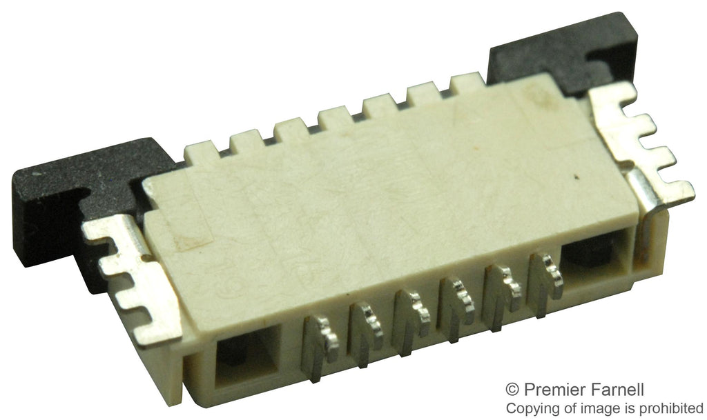 The 84952-6 is a 6-position 1-row ZIF right angle shrouded Flex-to-Board FPC Connector with 2µm tin-plated phosphor bronze single beam contacts and UL94V-O glass reinforced polyester (LCP) housing. The FPC series receptacle with stuffer actuator and surface-mount termination method to PC board.