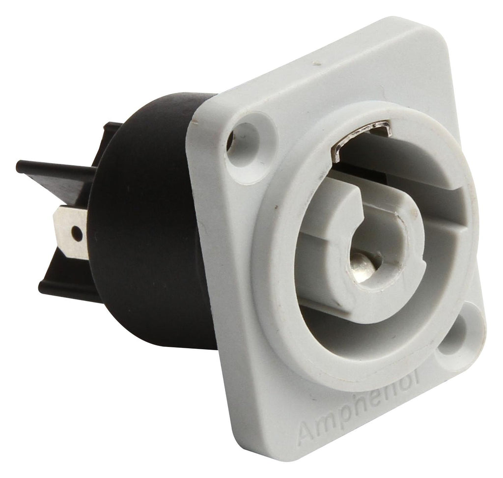 The HP-3-MDG from Amphenol is part of the HP Series of connectors suitable for AC power supply. Rated at 25A / 250VAC this 3 pole (2 + PE) chassis power connector is keyed and colour coded for power-out (Grey).