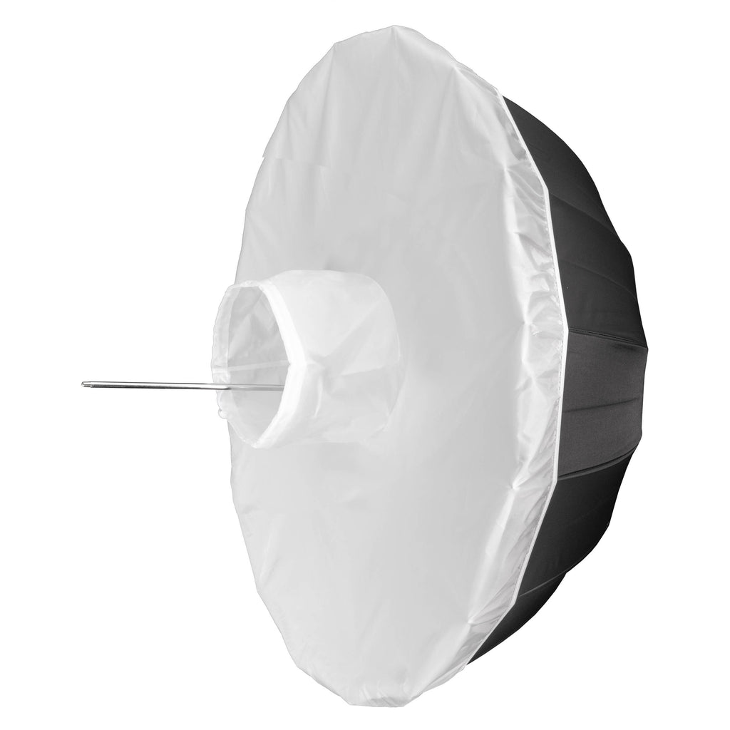 It's Both an Umbrella and Softbox Slipping the Diffusion Cover over the open end of your umbrella instantly turns it into a softbox! While the diffuser absorbs only about 1 stop of light, it's a small price to pay for this modifier's soft, flattering quality of light backed with moderate contrast. Soft, Diffuse Light The diffuser widens the beam angle to create a soft wraparound quality of lighting that's ideal for portraiture. The Beauty of Simplicity Setting up in seconds as compared to a softbox, the Diffuser is ringed with elastic to ensure a tight fit and mounts to your flash head with a simple draw string. UPC: 847628032514