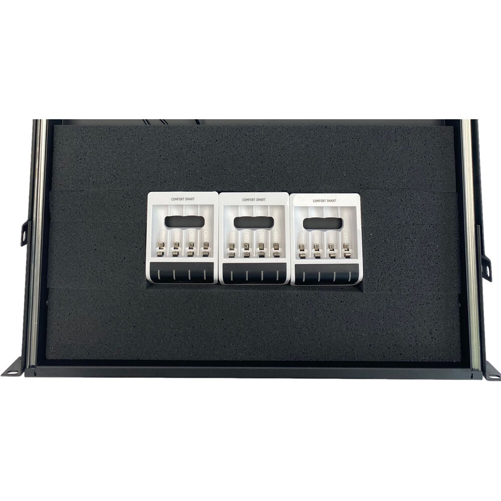 Enjoy the convenience of rackmount charging with this 1 RU 12-Channel Comfort Smart Rackmount Kit from Ansmann for AA and AAA batteries. It includes comfort series battery chargers and utilizes a multi-port USB power supply contained with the rack drawer. The unit charges AA's in about 2.5 hours and allows for individual monitoring of cells. The trickle charge feature keeps batteries ready to go after charging.