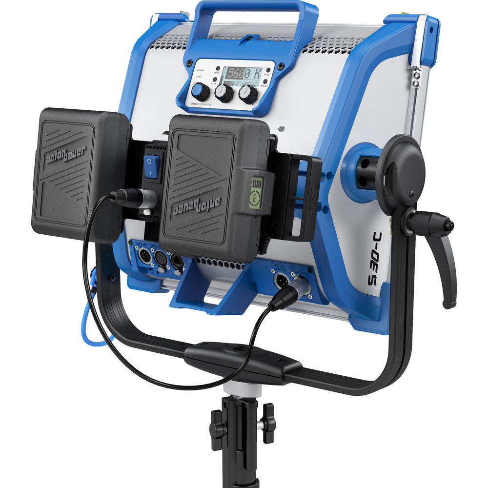 The Anton Bauer Battery Plate for Skypanel S30 and S60 LED Soft Lights from ARRI allows 2 Anton Bauer type batteries to power the Skypanel LED fixture.