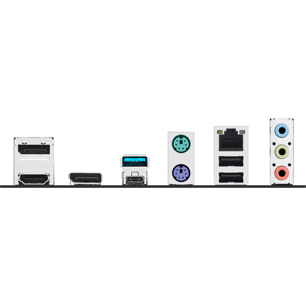 Connect peripherals such as keyboards and mice to the rear panel's two USB-A 2.0 ports while using the USB-A and USB-C 3.2 Gen 2 ports for transferring data from compatible devices. Windows 10 or Windows 11 64-bit is required to take advantage of this motherboard's features.