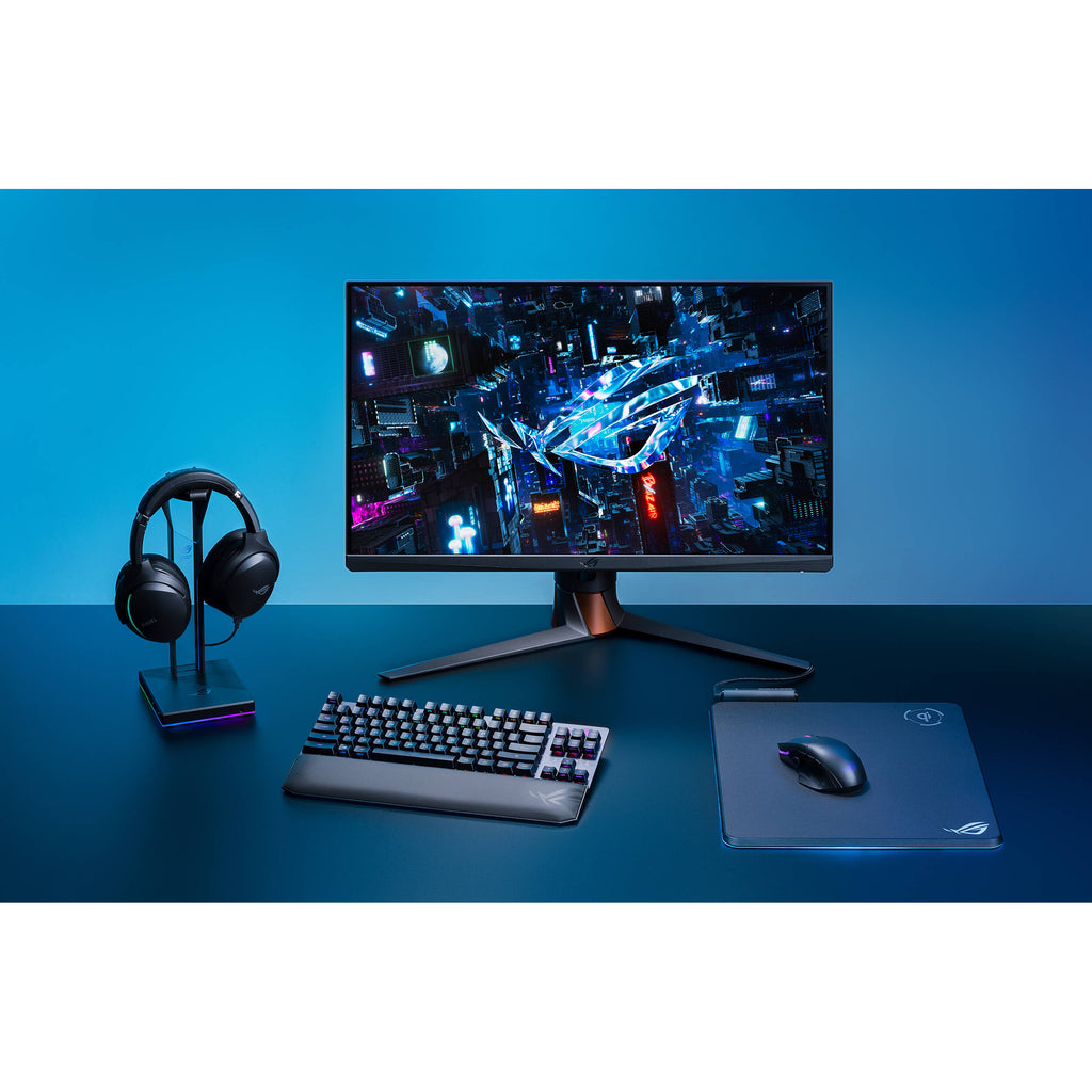 The ROG Strix Scope RX TKL Wireless Deluxe includes the mainstay features of the Strix Scope series such as an extended left Ctrl key, a quick-toggle function, and a stealth key that instantly hides all your apps and mutes the audio for added privacy.