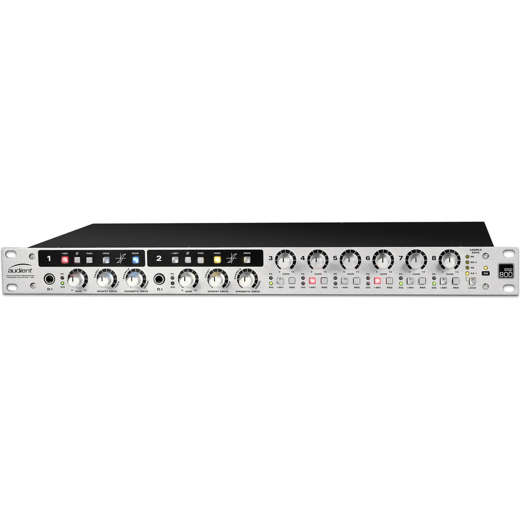 Designed for professional recording studios that require expandability, the Audient ASP800 is an 8-channel Class-A microphone preamplifier and audio interface. The single 1 RU 19" rackmountable all-metal enclosure provides eight channels of preamps from the company's renowned consoles designed by David Dearden, along with 118 dB A to D converters from Burr Brown.