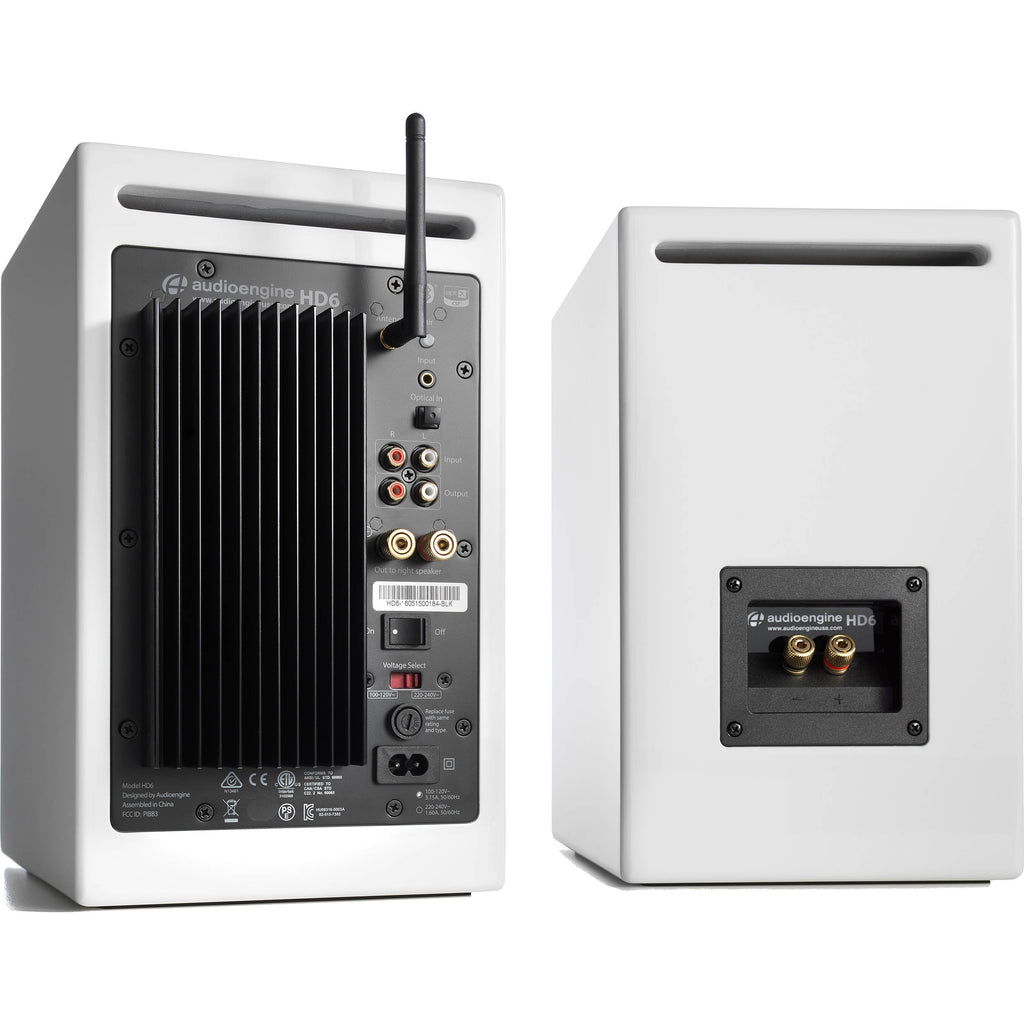 - The speaker cabinets, drivers, bass port designs, amplifiers, and passive crossovers are all tuned together for the HD6. This, in turn, helps make for a more efficient system that requires less power than passive speakers and a separate integrated amplifier or similar A/V components. Audioengine builds all this into the left speaker cabinet to make it easy to connect your smartphone, tablet, computer, display, network player, or any other audio product.