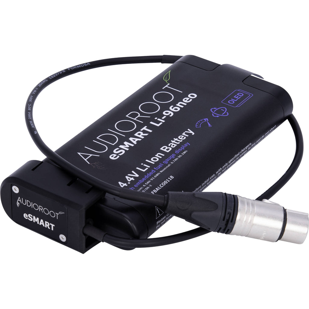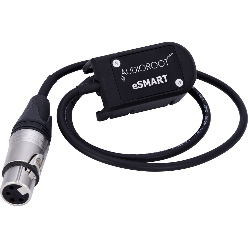 Power XLR devices with the 4-Pin XLR Battery Output Cable from AUDIOROOT. This power cable has a eSMART molded battery female connector and a Neutrik XLR 4-pin female connector. A 23.6" cable length accommodates most setups.