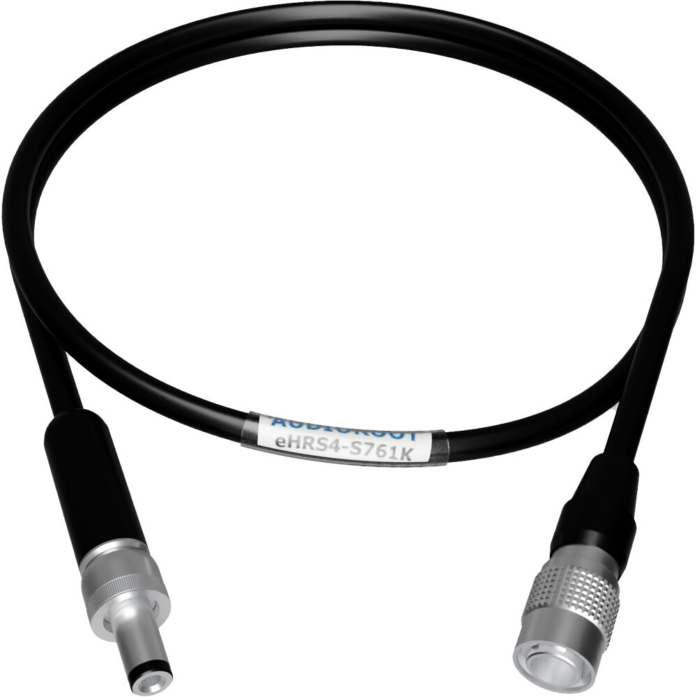Draw power from your AUDIOROOT batteries and power distributors with the 4-Pin Hirose Male to Switchcraft S761K Power Cable. The cable has a male 4-pin Hirose connector on one end and a 2.1mm ID, locking long-barrel Switchcraft 761K connector on the other.