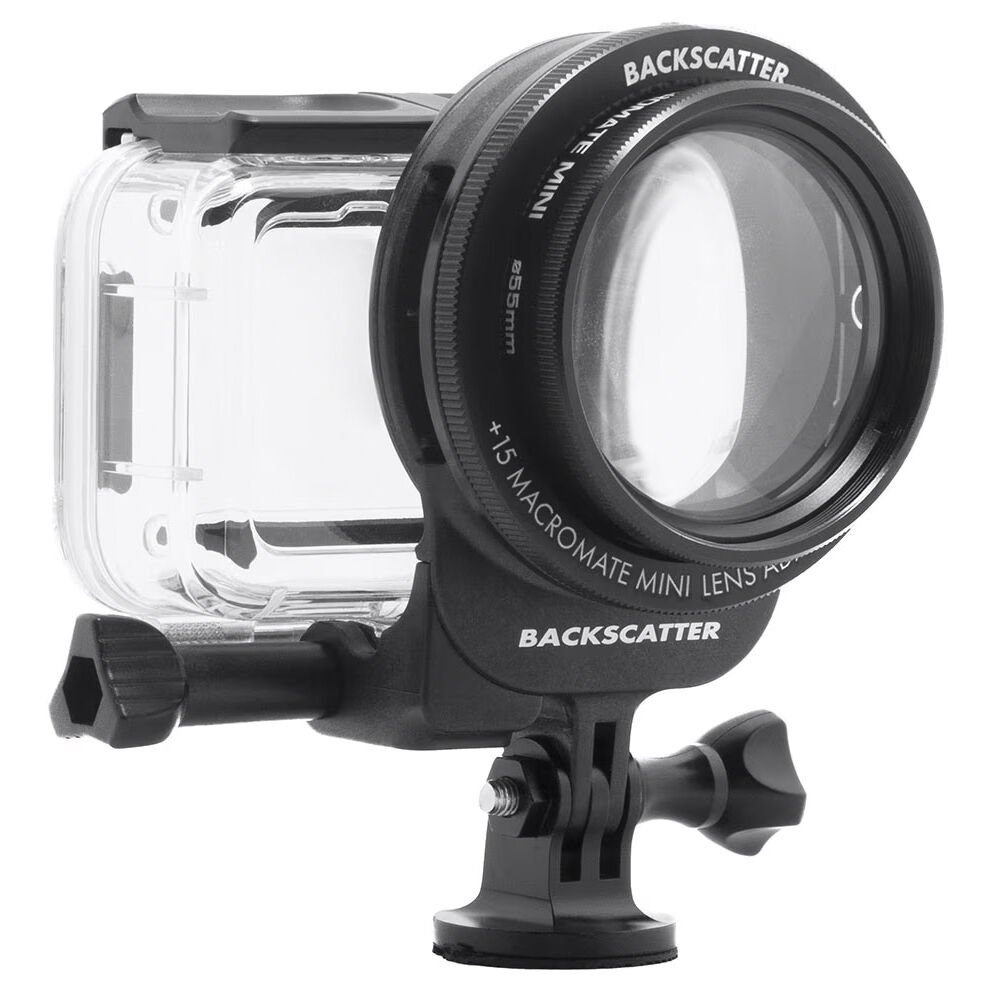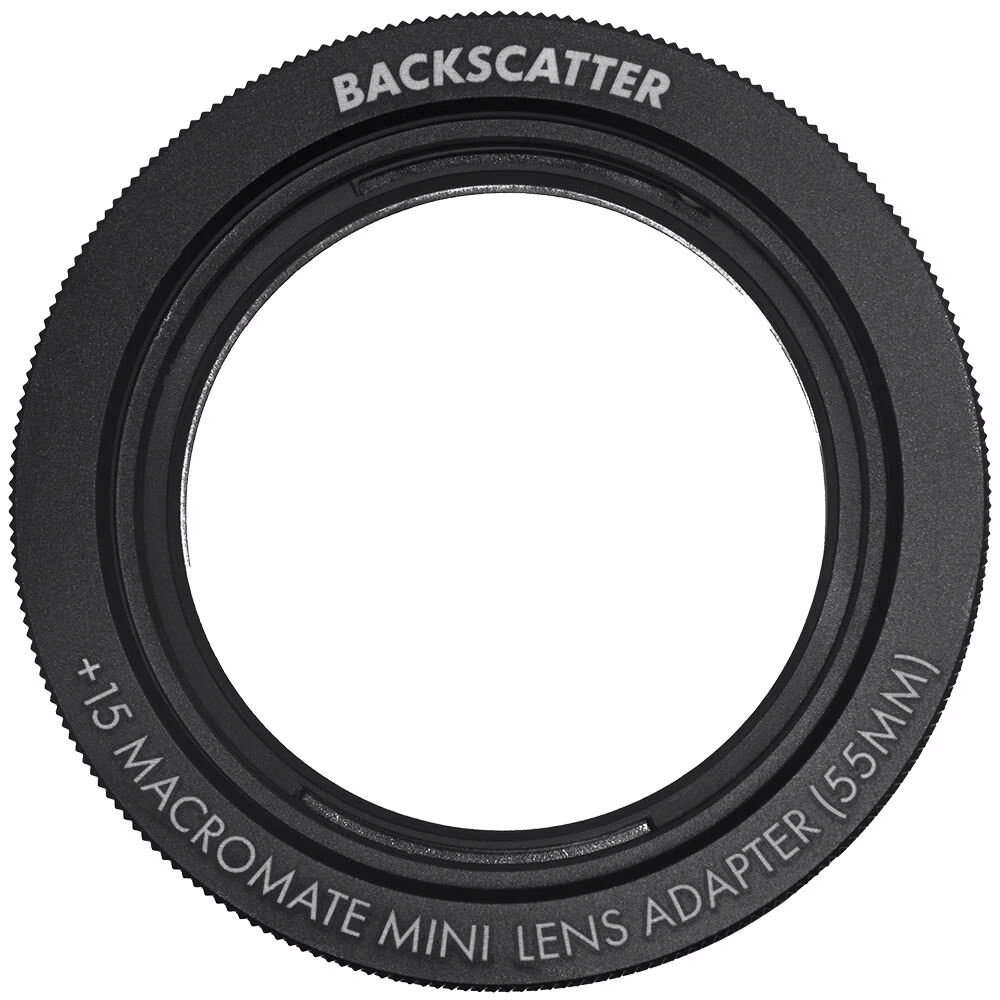 This Backscatter 55mm Lens Adapter allows the +15 MacroMate Mini and Sharp Wide Lens Pro to be used with QRS-02 mount for GoPro cameras.
