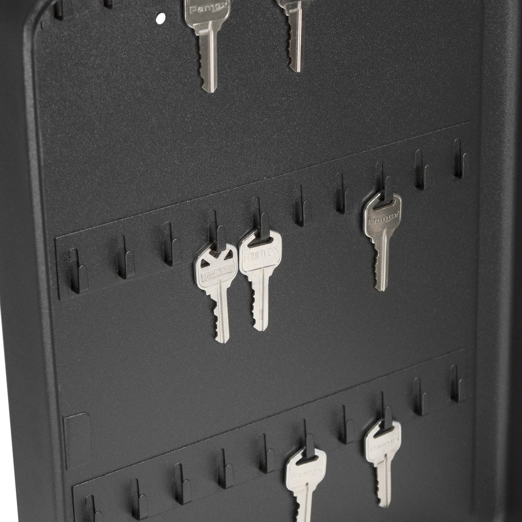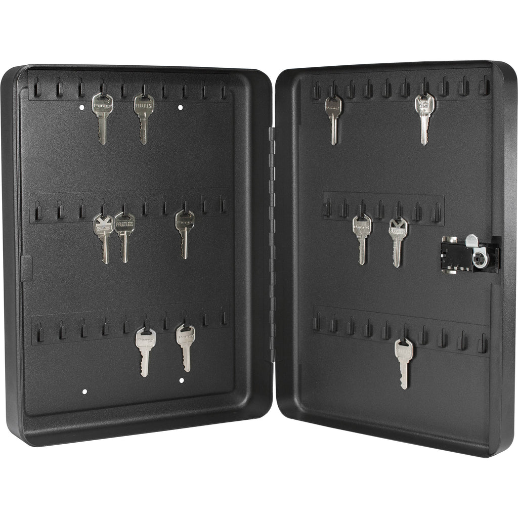 The 60-Position Key Safe with Combination Lock from Barska features a hook-style cabinet that makes key organization easy. The hooks allow you to hang keys with or without key tags or hang multiple keys with a key ring. Its 0.8mm solid steel construction allows it to withstand everyday wear and tear. The safe can be easily mounted with the 2 pre-drilled holes and mounting hardware provided. This key safe comes with two emergency unlock keys, 60 numbered stickers, and mounting hardware.