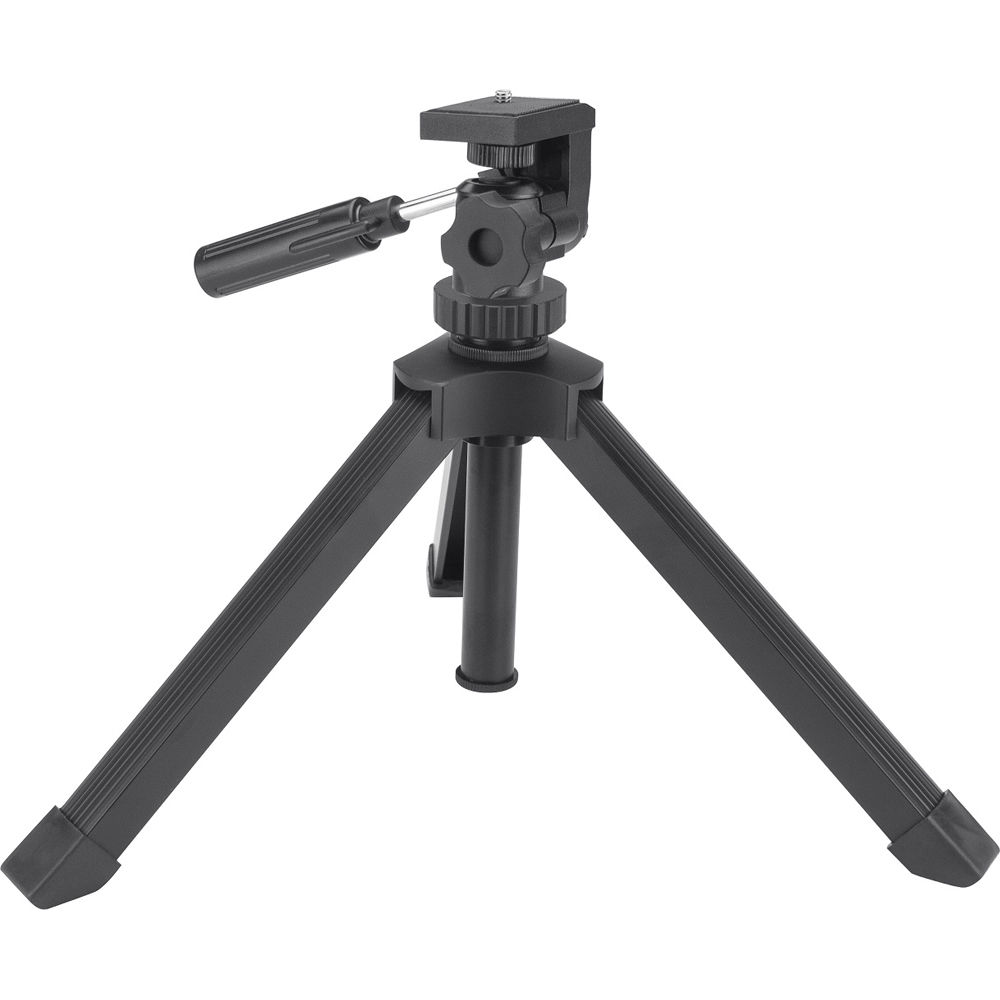 With its variable operating height of 10.25-14", this Heavy Duty Tabletop Tripod from Barska is designed for use on desks and tabletops and for low-angle and macro photography. Weighing 19 oz and folding to 12.5", this tripod is designed with portability in mind. Attach your equipment to the included pan/tilt head using the 1/4"-20 thread and easily change perspective with the adjustable center column. Rubber feet at the ends of three compact one-section legs provide additional stability and reduce slipping.