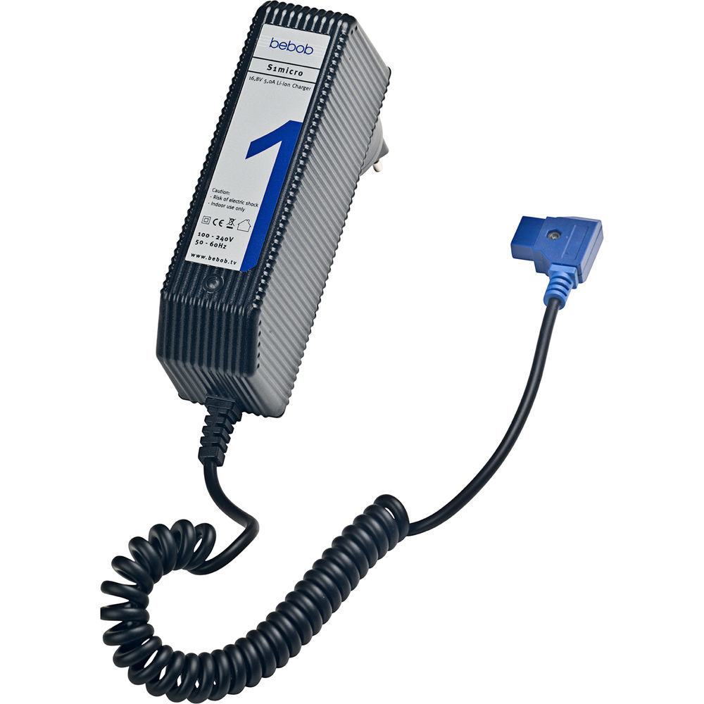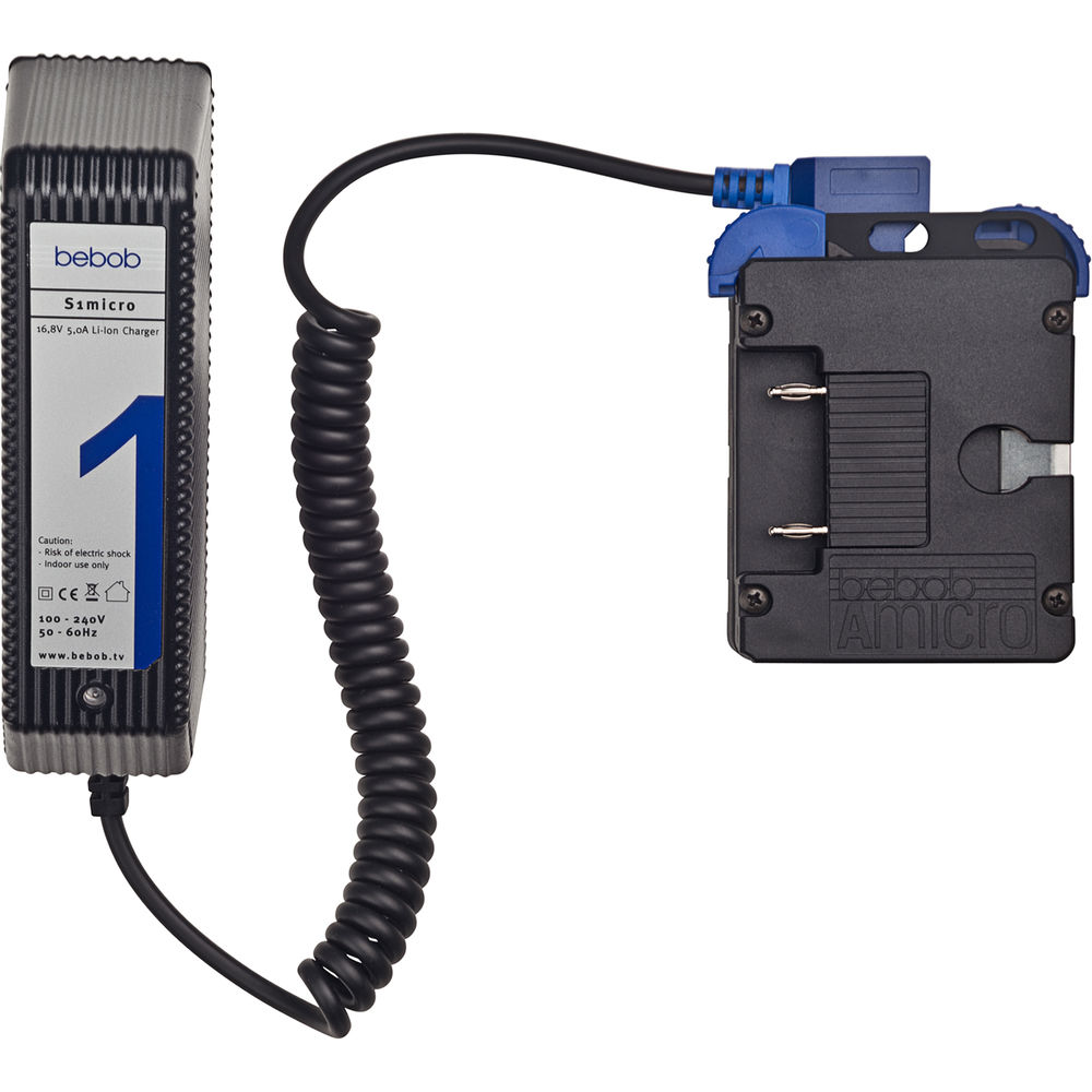 The adapter plugs into the a wall outlet and a D-Tap plug on the end of its coiled cable plugs into the dual battery plate to provide a 16.8V, 2.5A charge current. The batteries charge in approximately 1.5 to 3.5 hours, depending on the battery capacity and level. The D-Tap connector is a Twist D-Tap so you can plug the cable into the port in either direction. The cable can also plug directly into a battery D-Tap input to quick-charge a single battery without using the dual plate.