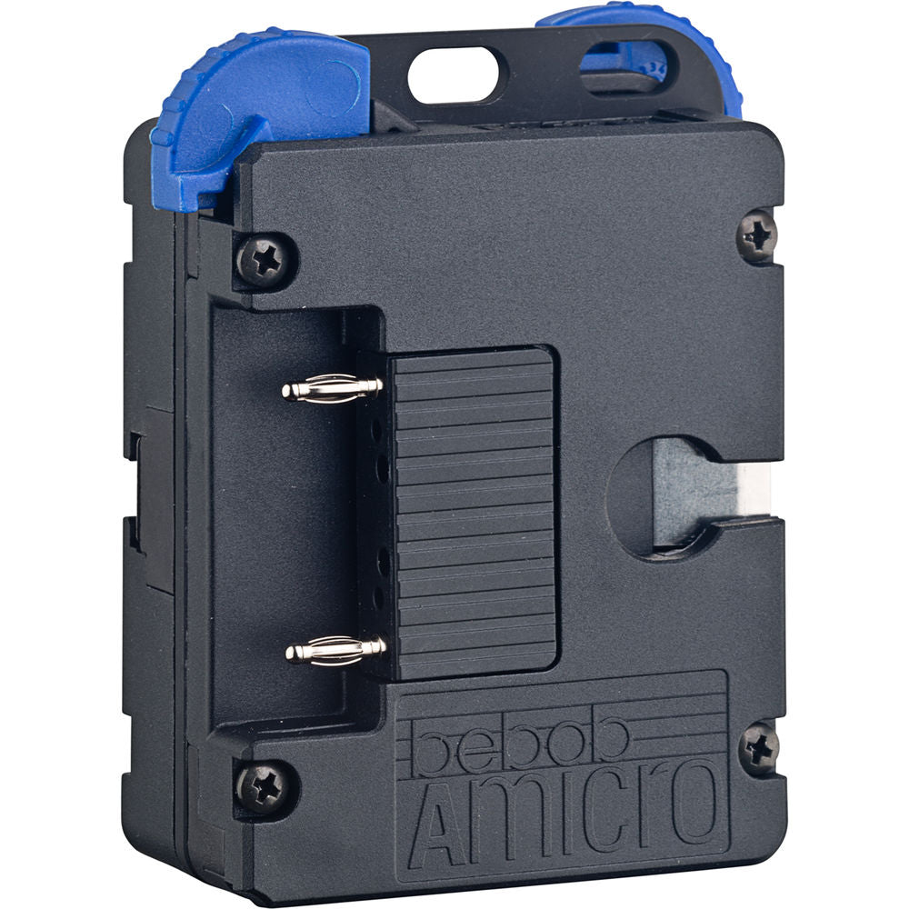 Charge two lithium-ion batteries simultaneously with the 2-Channel Gold Mount Simultaneous AMicro Quick Battery Charger from bebob. The charging plate consists of a two-slot Gold mount battery plate and an AC adapter with a D-Tap output. It is compatible with AMicro, Gold mount, and ACine batteries.