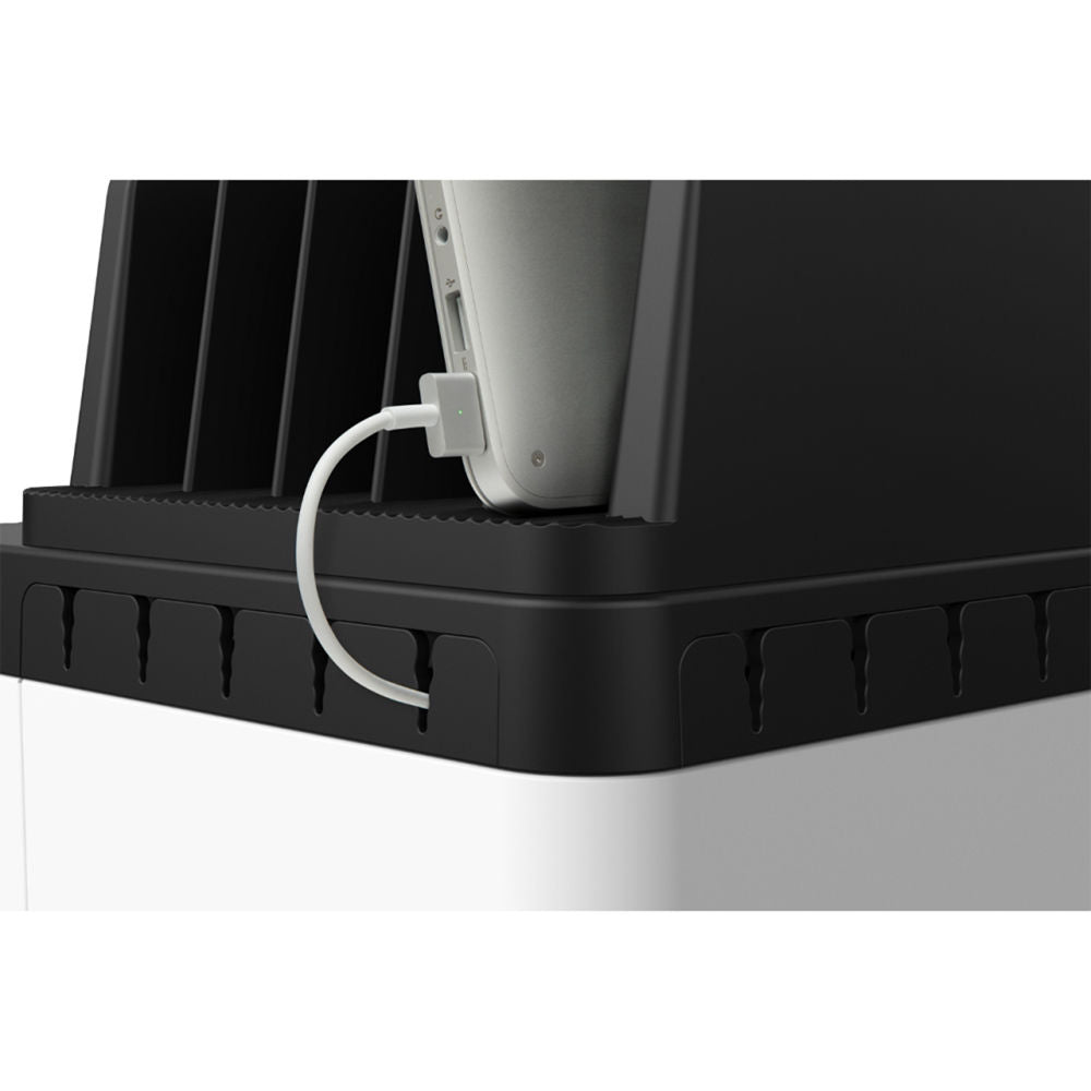 Simply plug in the RockStar's 120W power supply to an available AC outlet and you're ready to go. Connect a charging cable to your device, then place it into a divider slot, to rest and charge until you need it again. The trays support many device types, such as Chromebooks, laptops, tablets, and more. The RockStar provides each of your devices with up to 2.4A of fast charging power.