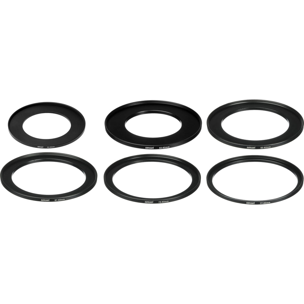 This Sensei 82mm Step-Up Ring Kit from B&H includes six step-up rings that permit the use of 82mm threaded filters on lenses with 52mm, 58mm, 62mm, 67mm, 72mm, or 77mm filter threads. They each feature a lightweight, aluminum-alloy construction that has a corrosion-resistant, black anodized finish for durability.