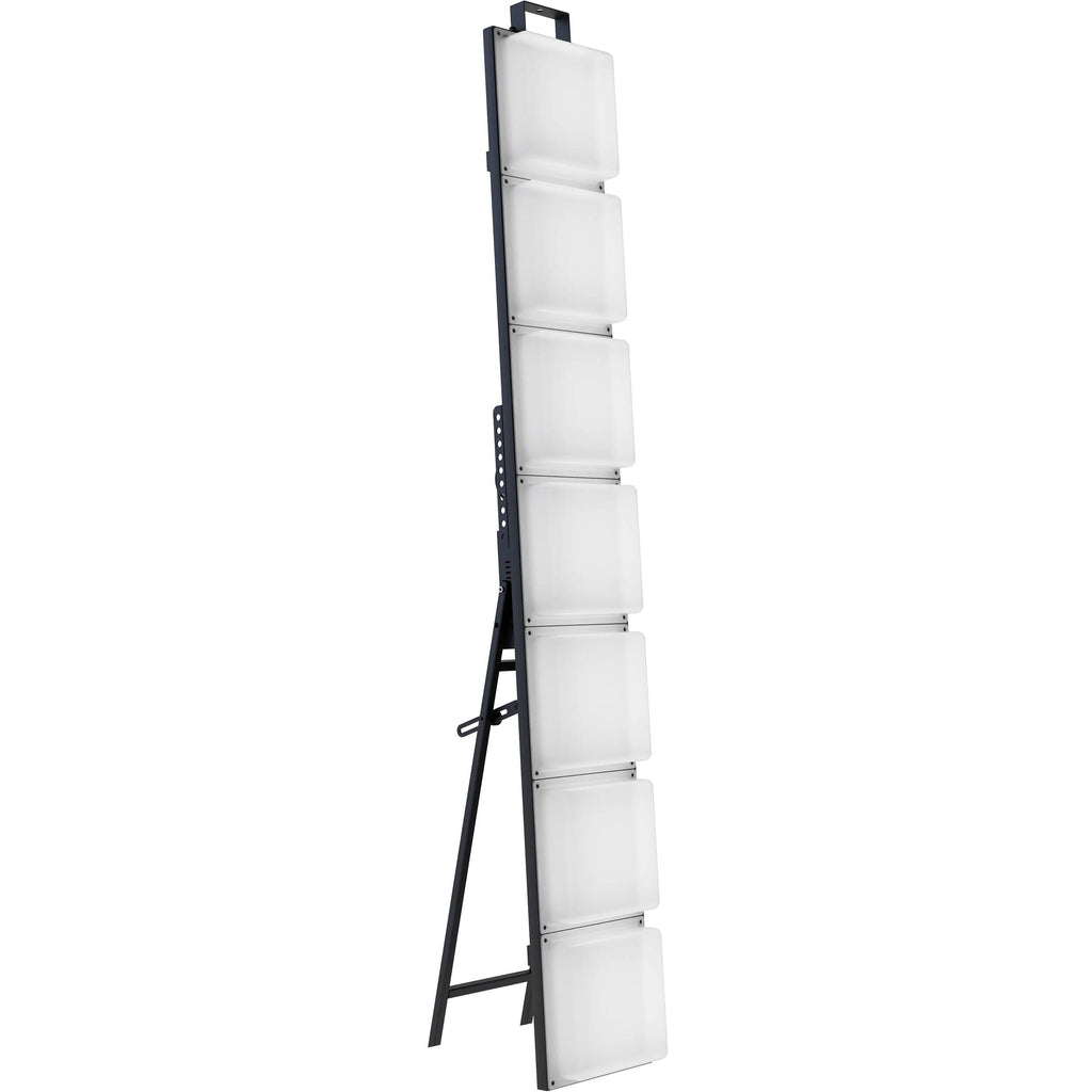The 5' tall fixture is loaded with built-in effects for streamlined setup and uninterrupted operation. Each of its seven LED-equipped squares has four individual zones for precise programming of eye-catching color chases and other effects. Multiple Spektros can be linked and rigged together for a more expansive impact. 0-100% dimming, variable strobe, and sound active modes to help to provide a smooth and engaging experience for audiences, allowing them to flow freely to the music. It features zero fan noise and flicker-free output, making it suitable for lighting effects for music videos and other recorded productions. It includes mounting brackets for multiple-unit rigging, for creatives who crave big impact.