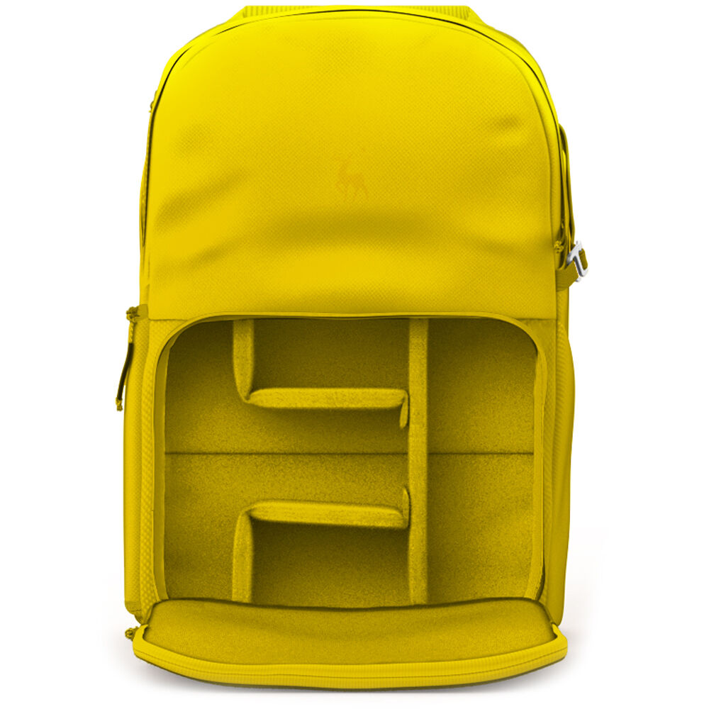 The lemon yellow Jumper Photo Backpack from Brevite is a handy camera backpack. Compact, lightweight, and functional, the Jumper uses adjustable dividers to organize your photo gear and has room for a laptop, clothing, and other essentials. Stow your tripod along the side or the bottom, and you're ready to set out on your next creative project.