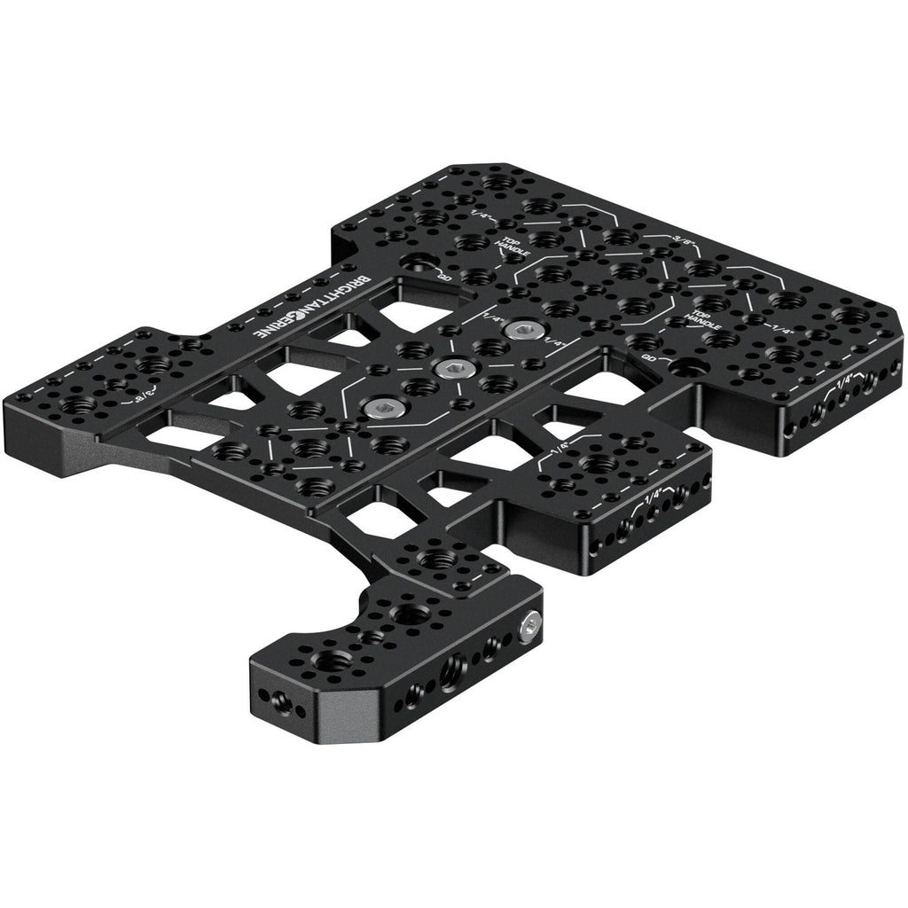 Expand mounting options on your camera with the Top Plate for Blackmagic URSA Cine Camera by Bright Tangerine. It is designed for use with the separately available Blackmagic URSA Cine and installs on three 1/4"-20 screws. Add multiple 1/4"-20 and 3/8"-16 threads to your camera when you attach the plate, as well as MAP M4 and QD sockets. The plate's shape maintains optimal airflow, controlling heat on your camera. Use the extension piece on either side of the plate, thanks to a modular design. Enjoy long-term use thanks to a durable aluminum construction.