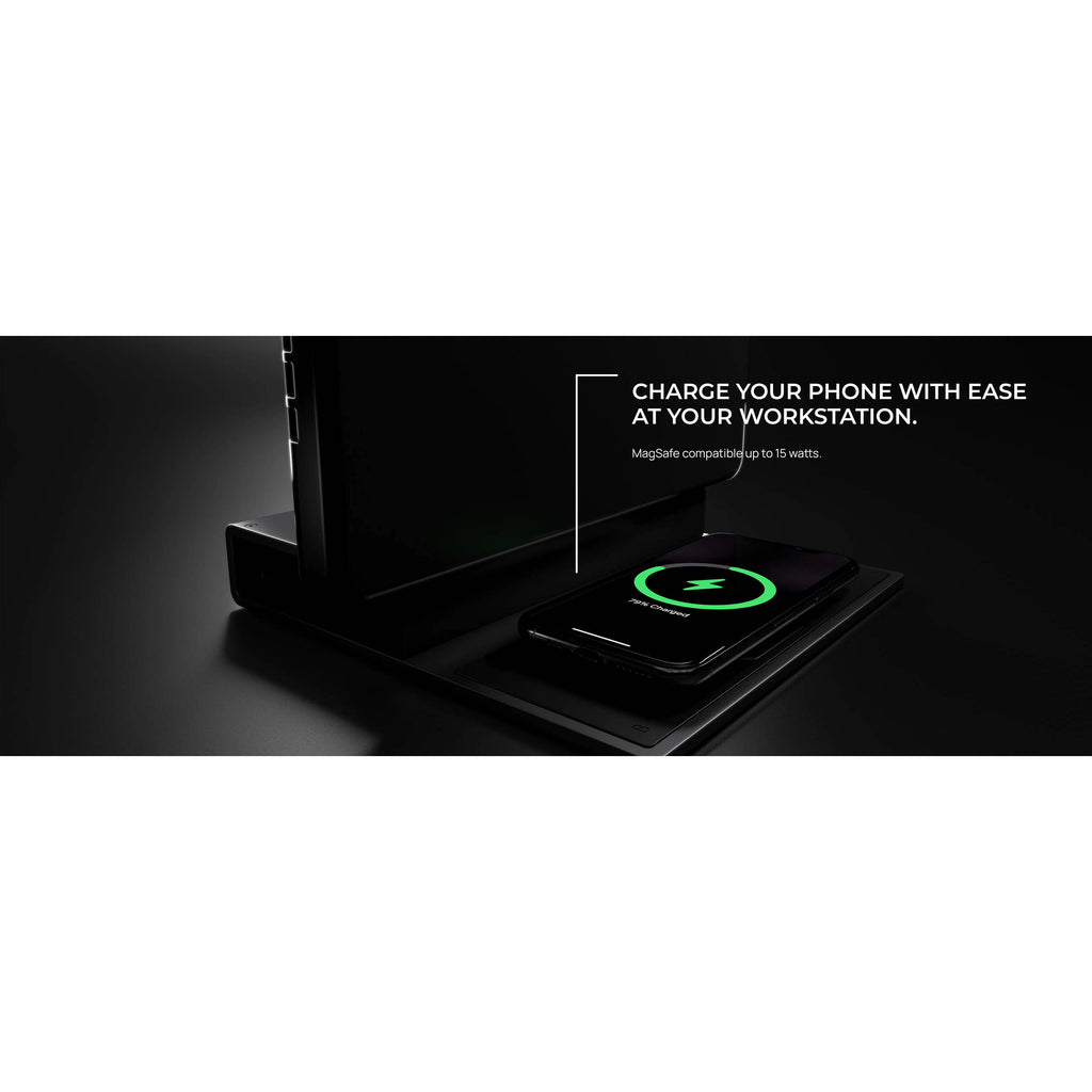 The dock base also incorporates a wireless phone charger. MagSafe compatible, this wireless charging pad delivers up to 15W of power to a compatible device.