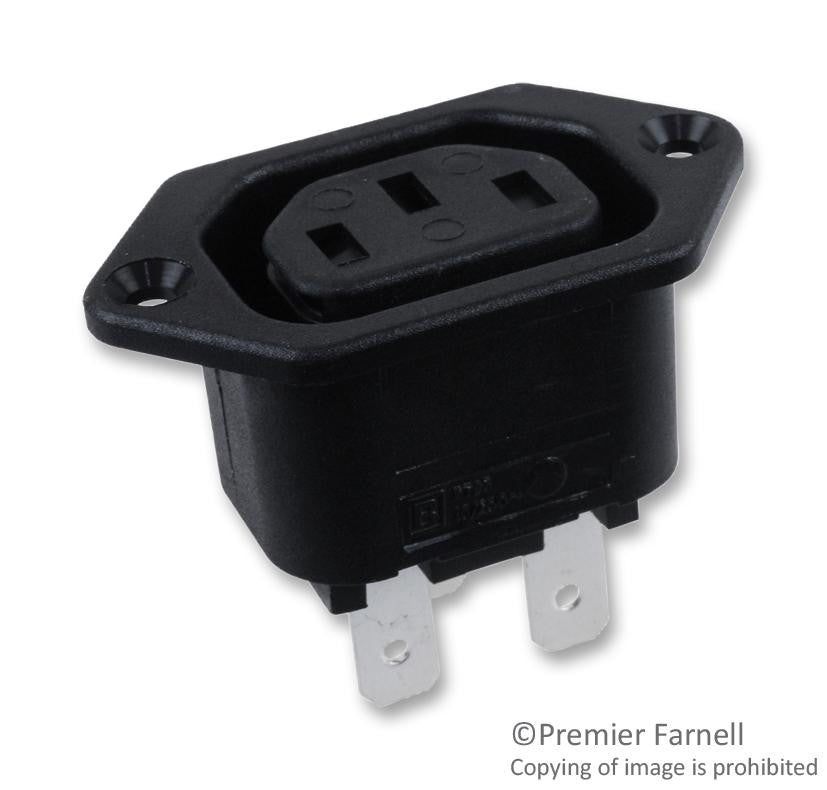 This is a Power Entry Connector, PX0793 Series, Receptacle, 250 VAC, 10 A, Flange Mount, Quick Connect product from BULGIN with the model number PX0793/63
