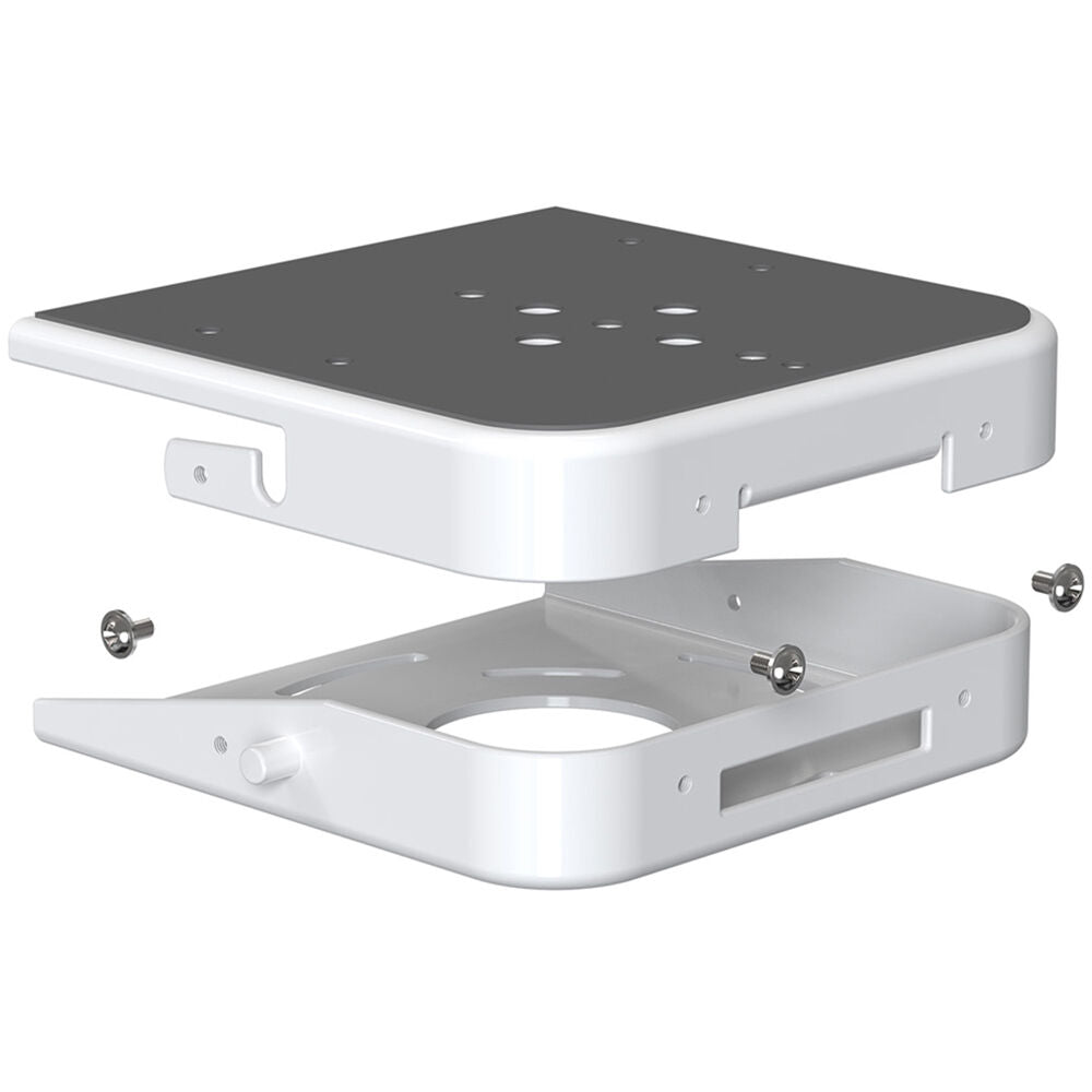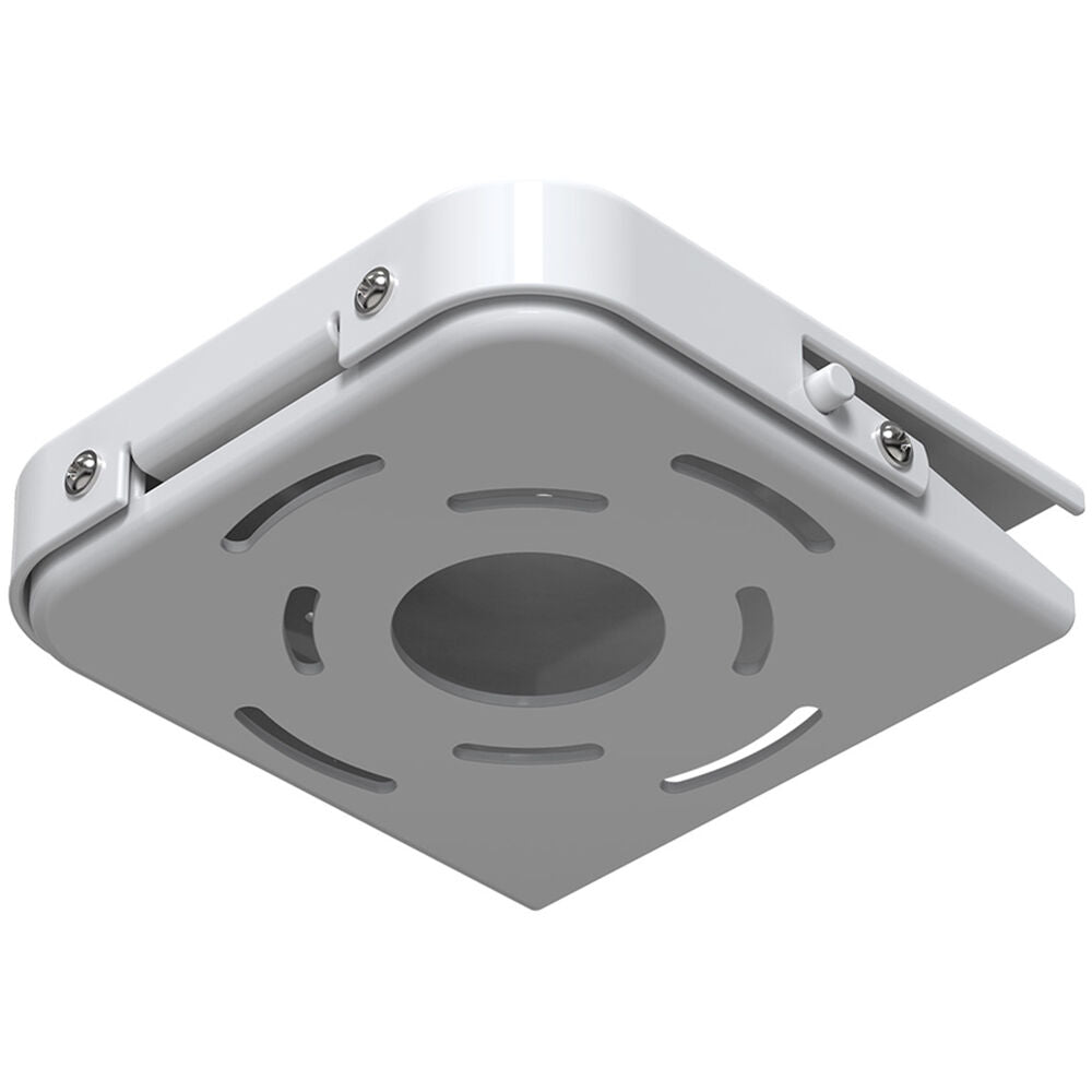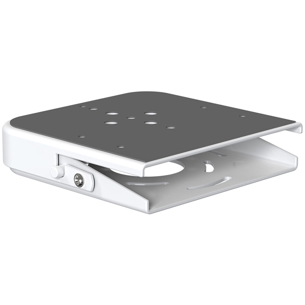 Offered here in white, the Universal PTZ Camera Ceiling Mount from BZBGear is a slim-profile mount designed for mounting a PTZ camera to a ceiling. Multiple mounting points accommodate various mounting options, and the bracket's rubberized surface prevents unwanted movement. Constructed from heavy-gauge steel and featuring a powder coated finish, this bracket mounts directly to wood, drywall, and masonry. Camera mounting hardware and anchors are included.