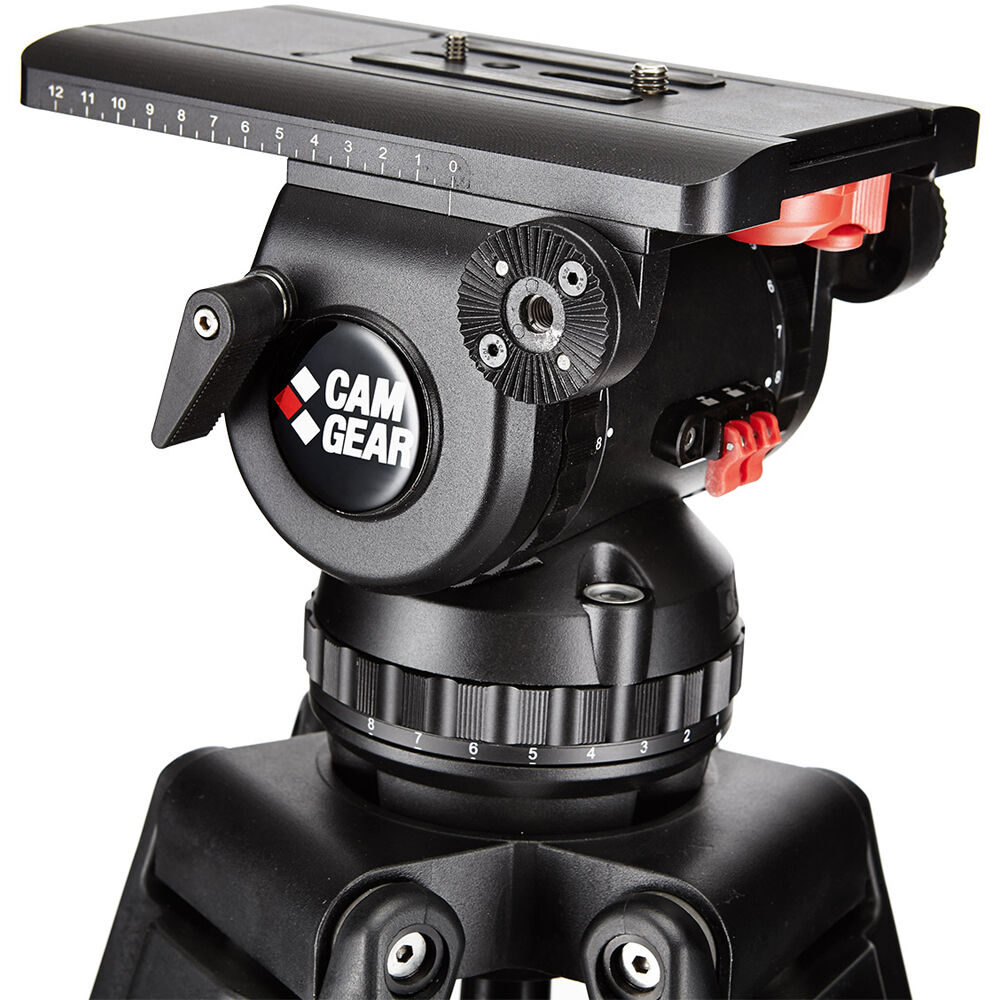 The 100mm half ball head is compatible with Camgear 100mm tripods. Its illuminated bubble level and easy-to-read counterbalance markings make it simple to use in any lighting conditions. Dual telescoping pan bars are included and can be rotated 360° or removed using the rosettes on either side.