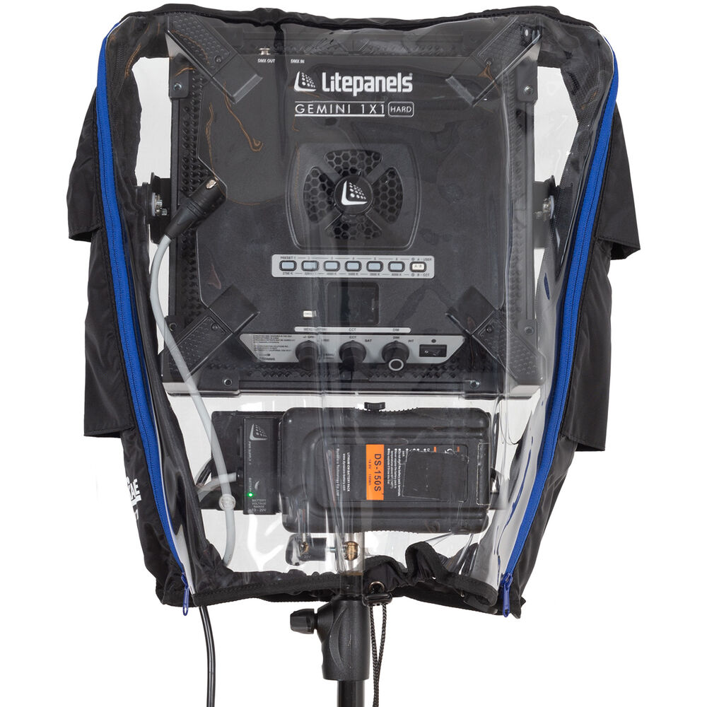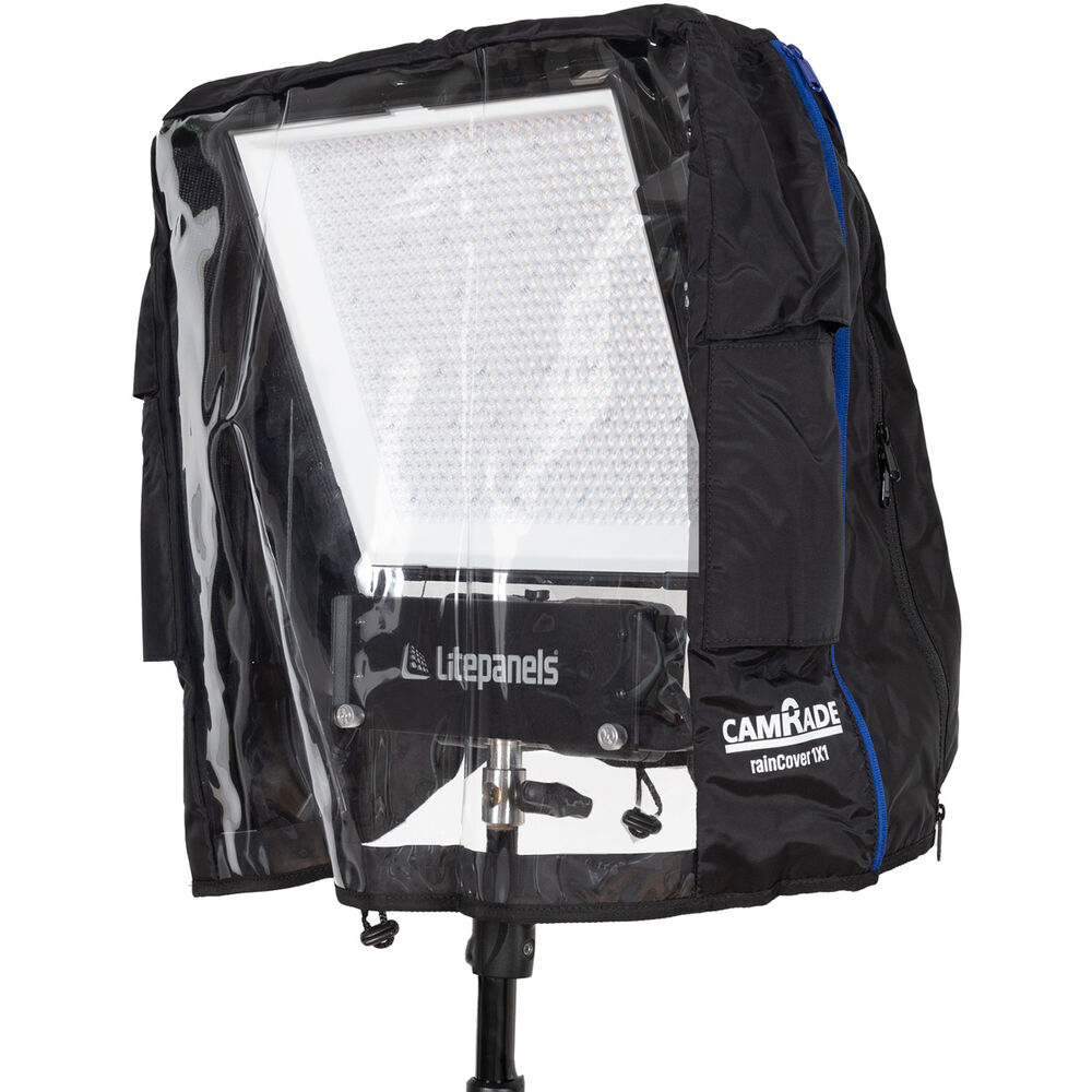 The rainCover 1x1 Universal Rain Protection Cover from camRade is a durable and convenient 20.5" universal cover made to protect your LED 1x1 light panels. It will keep your 1x1 LED light panels protected from harsh conditions including rain, dust, and dirt. With its universal design, multiple zippers, and clear vinyl windows, the rainCover 1X1 offers easy setup and quick access to controls/ports without degrading your light performance.
