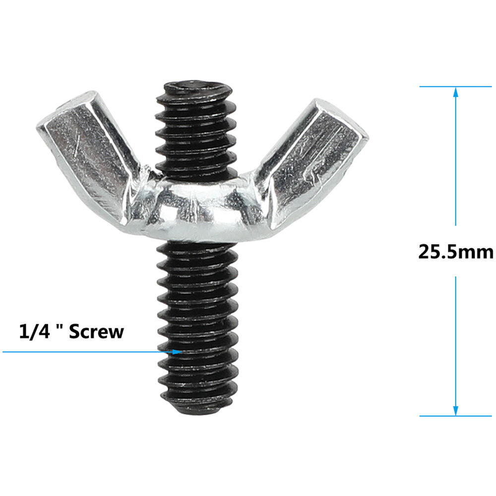 For use with various rigs and support systems to connect 1/4"-20 threaded components, this 1/4"-20 Screw Set with Wingnuts includes two screws and wingnuts to secure them to your surface of choice. In total, each screw measures 1" in length. Metal and steel construction, as well as zinc plating, creates an overall design that is durable and lightweight.
