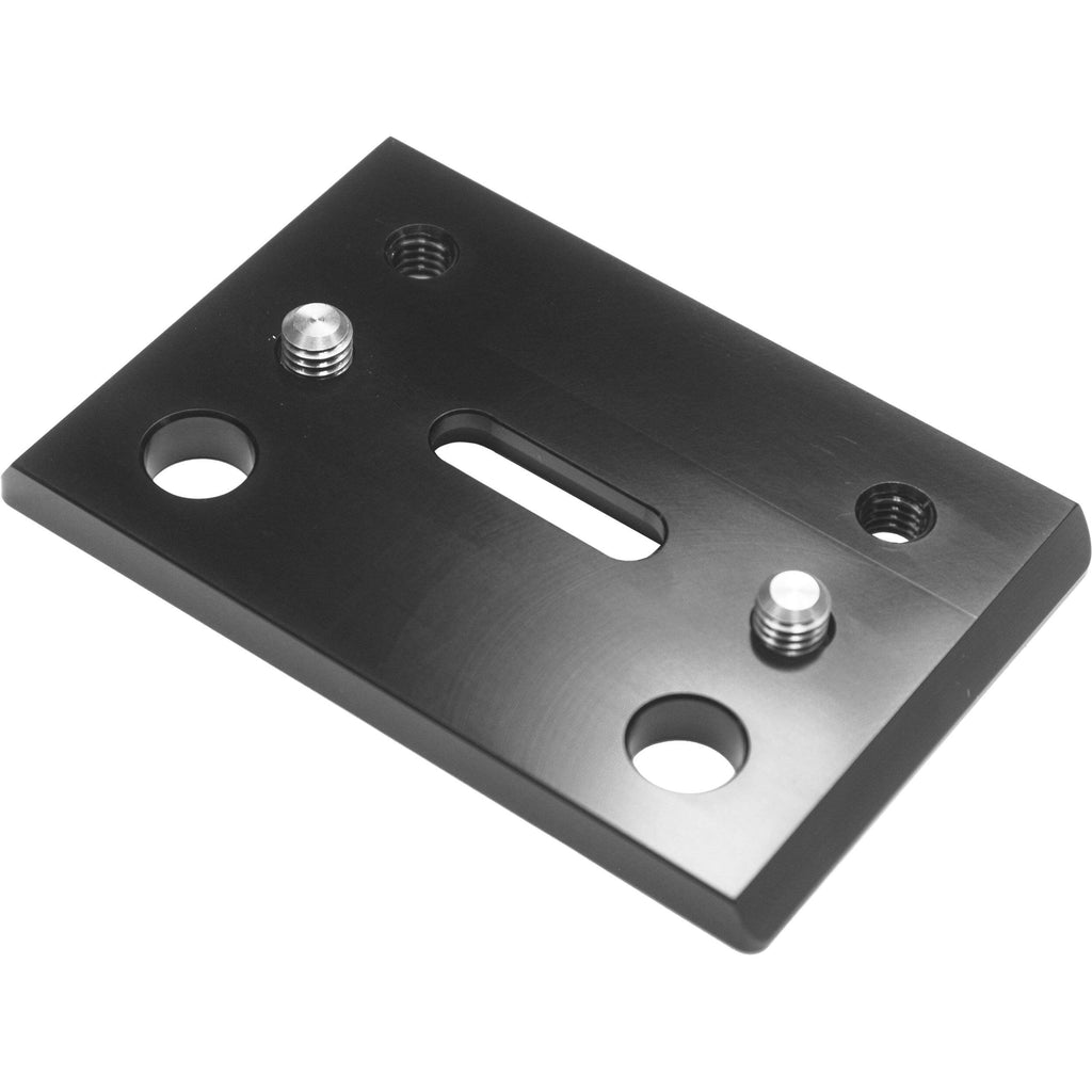 The plate features a center slot and two 3/8"-16 locating screws to ensure it stays secure in its mount. There are storage threads milled into the plate for your camera screws. Bar code slots are machined into the plate for rental house use. A hex wrench is included to tighten the locating screws.