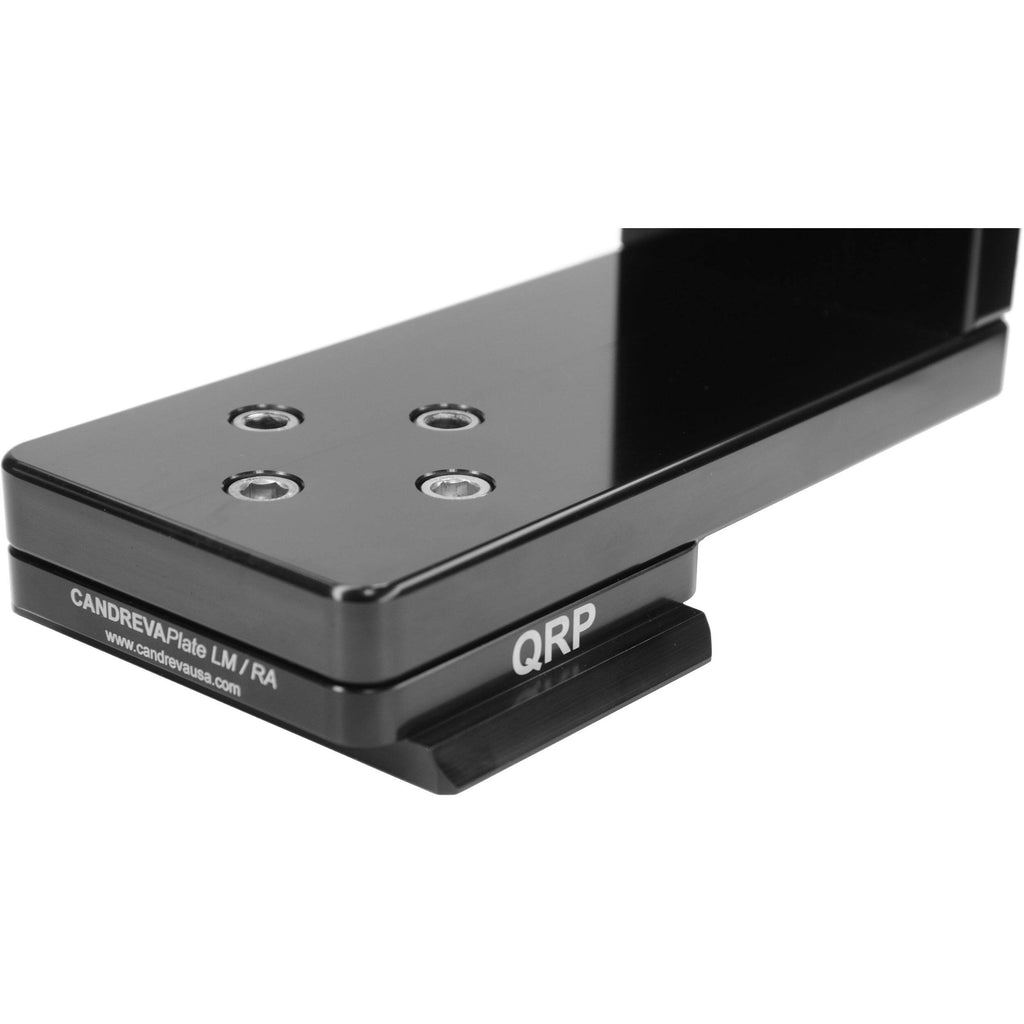 Mount your camera in a vertical/portrait position using this Plate-RA Vertical Camera Plate from Candreva. The L-shaped plate features a quick release plate on one side to mount onto a Euro plate receiver, such as the OConnor 2575 fluid head, and the other side features multiple pass-through mounting holes for your camera. A second quick release plate is included to allow a quick change of mounting orientation.