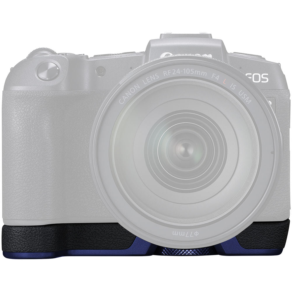 Dedicated to the Canon EOS RP mirrorless camera, the blue EG-E1 Extension Grip provides a larger, taller grip for more comfortable handling and manipulation of the camera. It attaches to the base of the camera and retains access to the battery and memory card compartment.