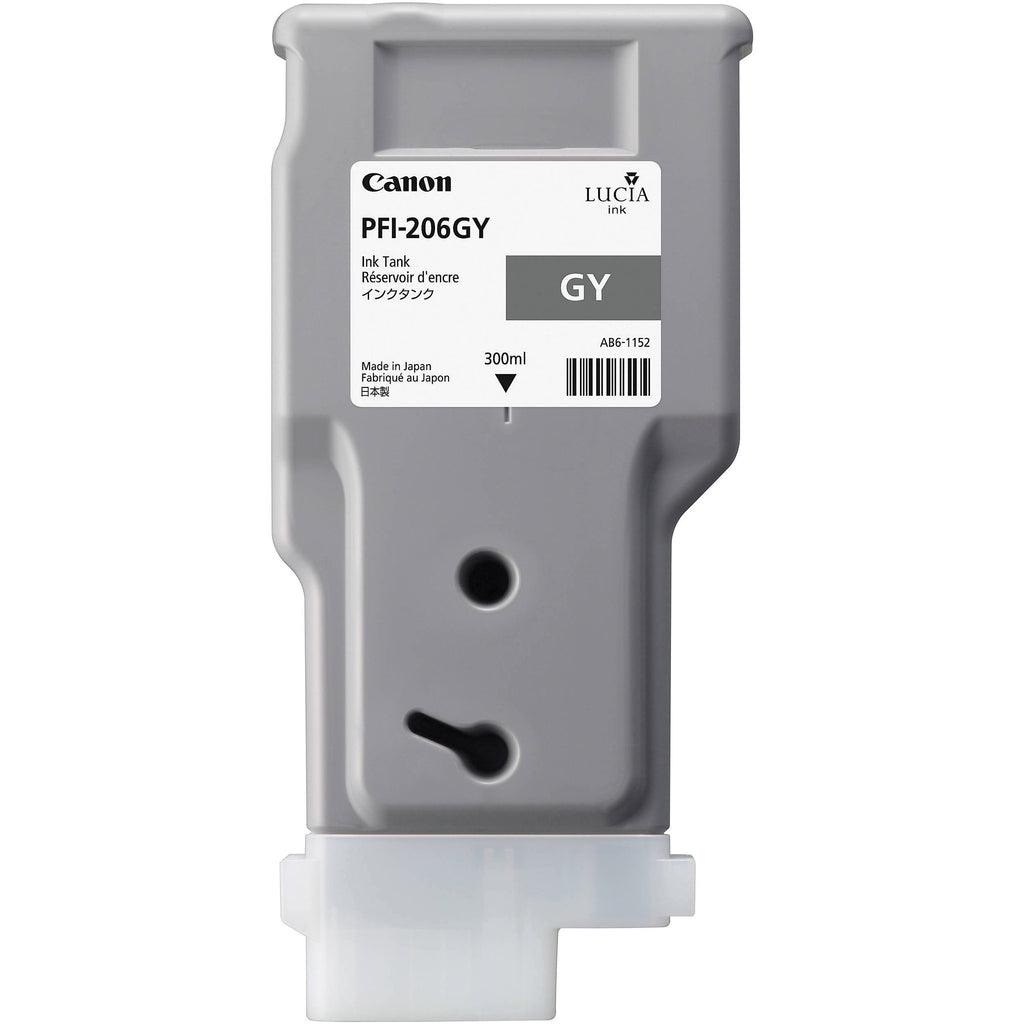 Printer Type Large Format Inkjet Printers Container Type Ink Tank Color Green Volume 300 mL Packaging Info Box Dimensions (LxWxH) 10.0 x 5.0 x 3.0" - Canon PFI-206 Gray Ink Cartridge (300 ml)