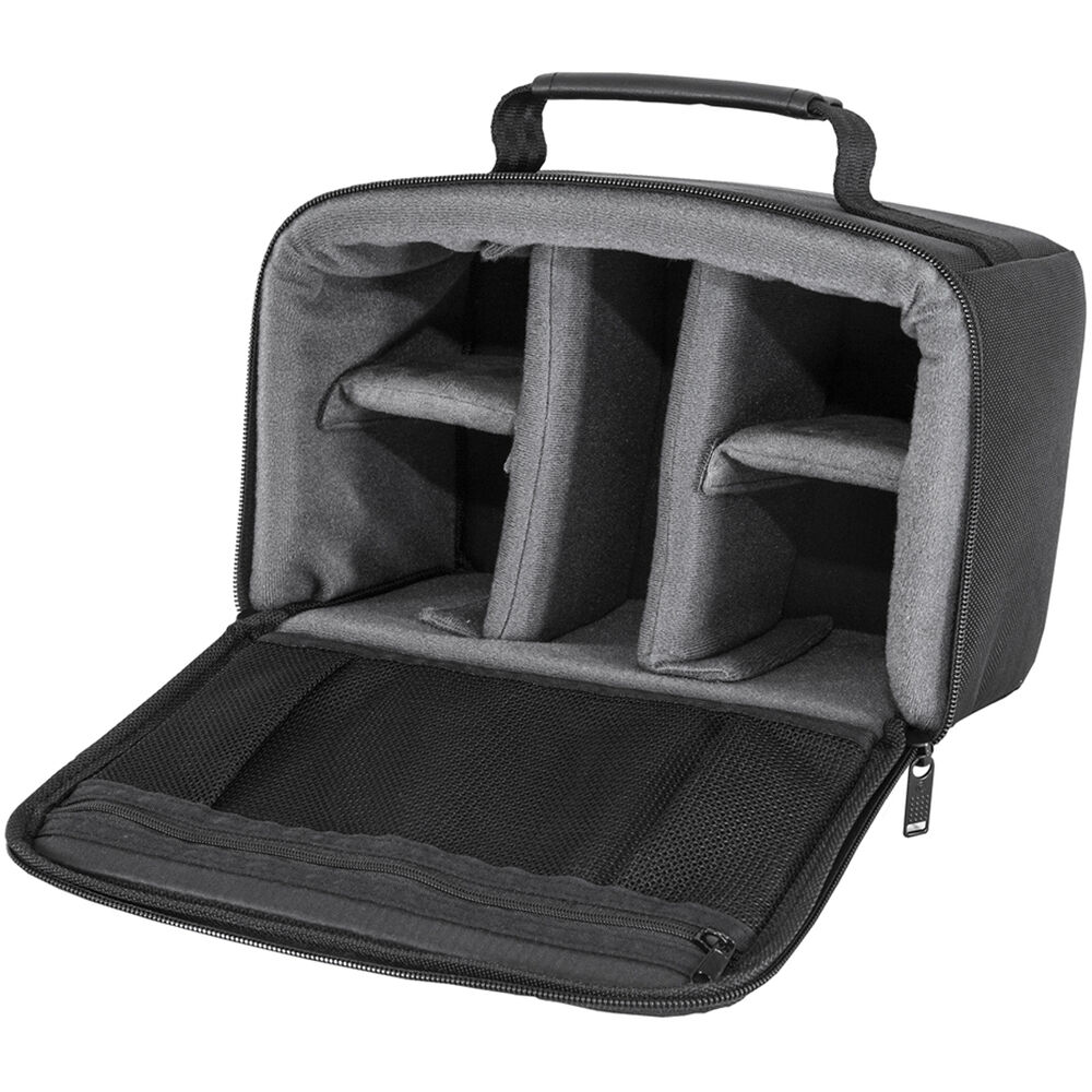 Store and transport your FlexTally system with this Vanguard Bag from Cerevo. The bag features a zipper closure, a carry handle, and a soft, durable fabric exterior. On the inside, it features padding on the edges and adjustable dividers to fit the FlexTally station, power supply, and four FlexTally lamps. There is a zippered pocket on the lid to fit additional accessories such as cables and cover frames.