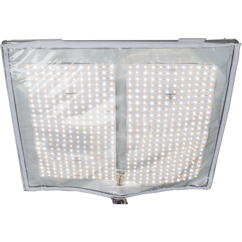 The Panel Lantern Powered by LiteGear 24 x 24" Lighting Kit from Chimera is a versatile soft light system with multiple uses and mounting options. At the heart of the kit is the PL100 light engine by LiteGear. This LED light array comes with a controller that allows you to adjust the color temperature from 2600 to 6000K as well as the light intensity from 0-100%. A multi-voltage power supply allows you to use the light anywhere in the world.