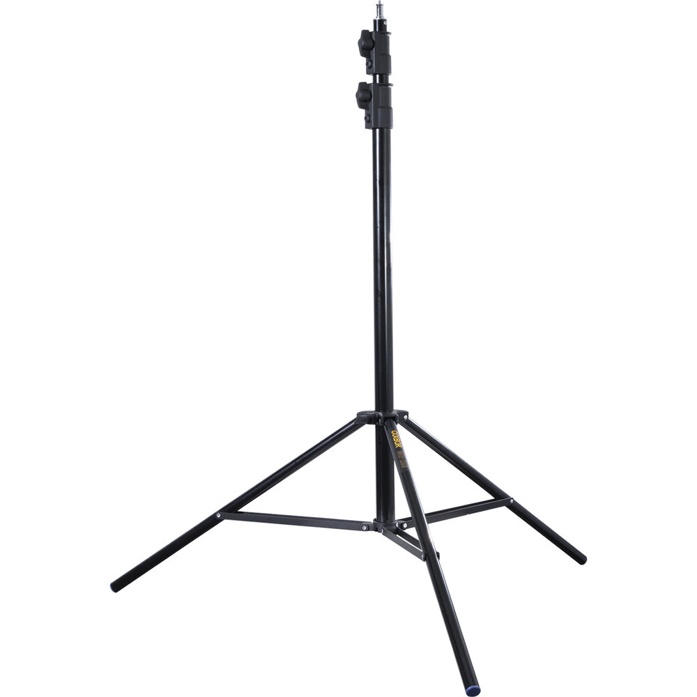 This Air-Cushioned Light Stand from COLBOR helps add extra security to your setup by making it more stable while protecting against sudden drops. A built-in spring and air-cushioned design helps slow the center column if it falls. A 5/8" stud with 1/4"-20 mounting screw offers wide compatibility for attaching lights, reflectors, softboxes, and more up to 5 lb. Sure-twist locks help keep the stand's three sections secure once you finish adjustments.