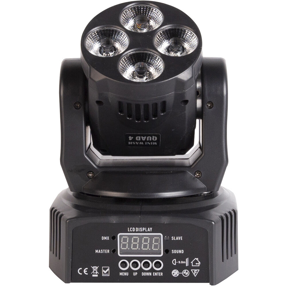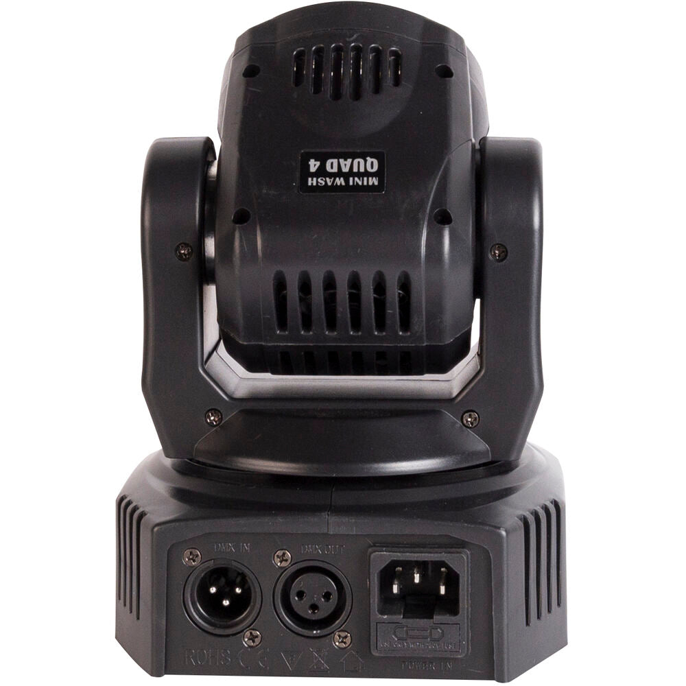 Lighting designers and mobile DJs in need of an affordable moving wash will be impressed with the ColorKey Mover Miniwash QUAD 4 MKII, a compact moving head wash that's ideal for lighting dancefloors, stages, and providing ambience and moving light effects. The Miniwash QUAD 4 MKII is powered by four 12W RGBW (red, green, blue, white) LEDs with a 25? beam spread and offers a pan through 540? and tilts 270?. DMX control allows you to adjust the position of the light fixture, as well as adjust the brightness and pulse for strobe effects. Supporting 14 or 16 channels of DMX, the 3-pin XLR input and output connectors allow you integrate the fixture into your DMX system. The light can be operated in a variety of modes including DMX512, primary/secondary, sound activated, and standalone. The Miniwash QUAD 4 MKII ships with a mounting bracket and power cord.
