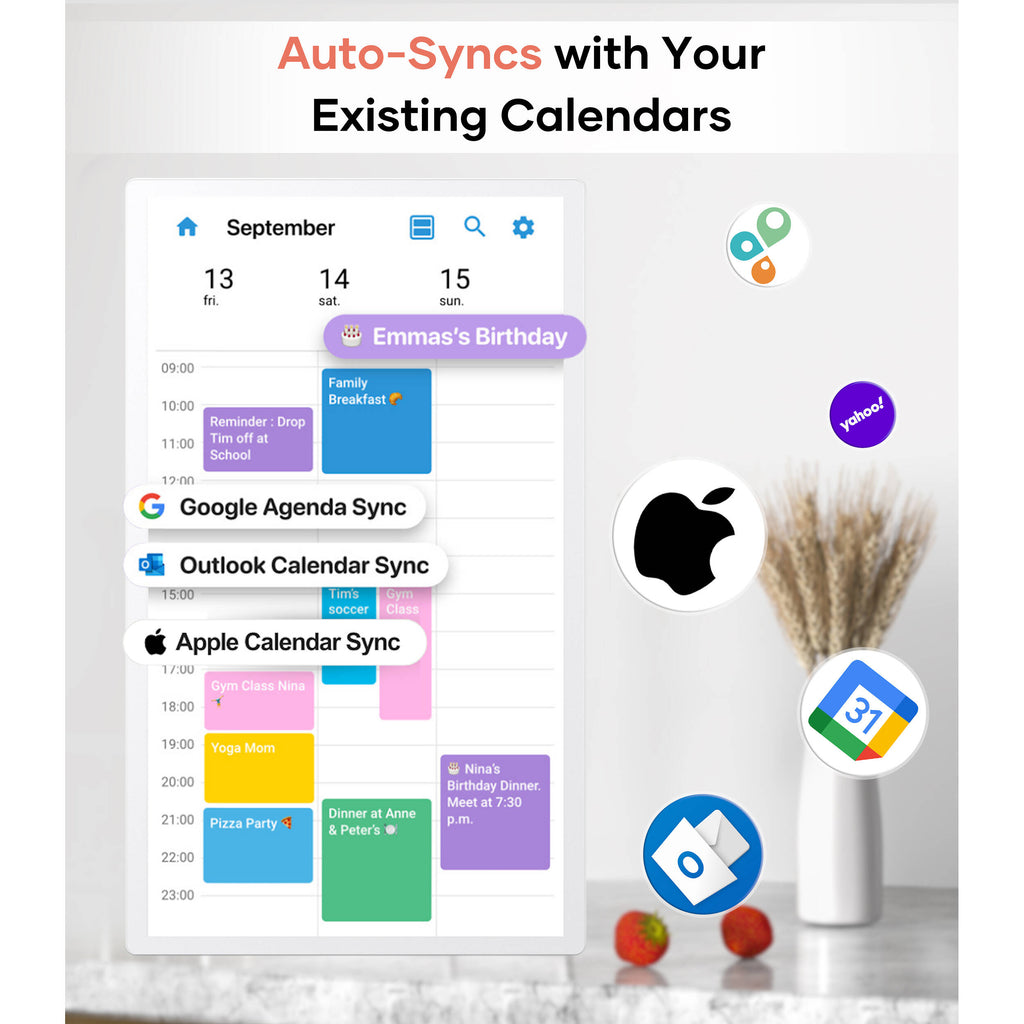Create a dashboard, or two, or more, and populate it with app-based drag-and-drop widgets to organize your family's life. Create calendars, to-do lists, weather notification, meal plans, chore lists, and more. These widgets can be moved and resized within the dashboard. With Wi-Fi access, you can go on the built-in app store to add even more. Some can even be interactive, such as meal plans, which can include links to video tutorials and recipes; or to-do lists that can utilize two-way auto sync with popular calendars from Google, Apple, and Outlook. Thanks to two-way sync, you can view Calendar+ 2 entries away from home on your phone or tablet.