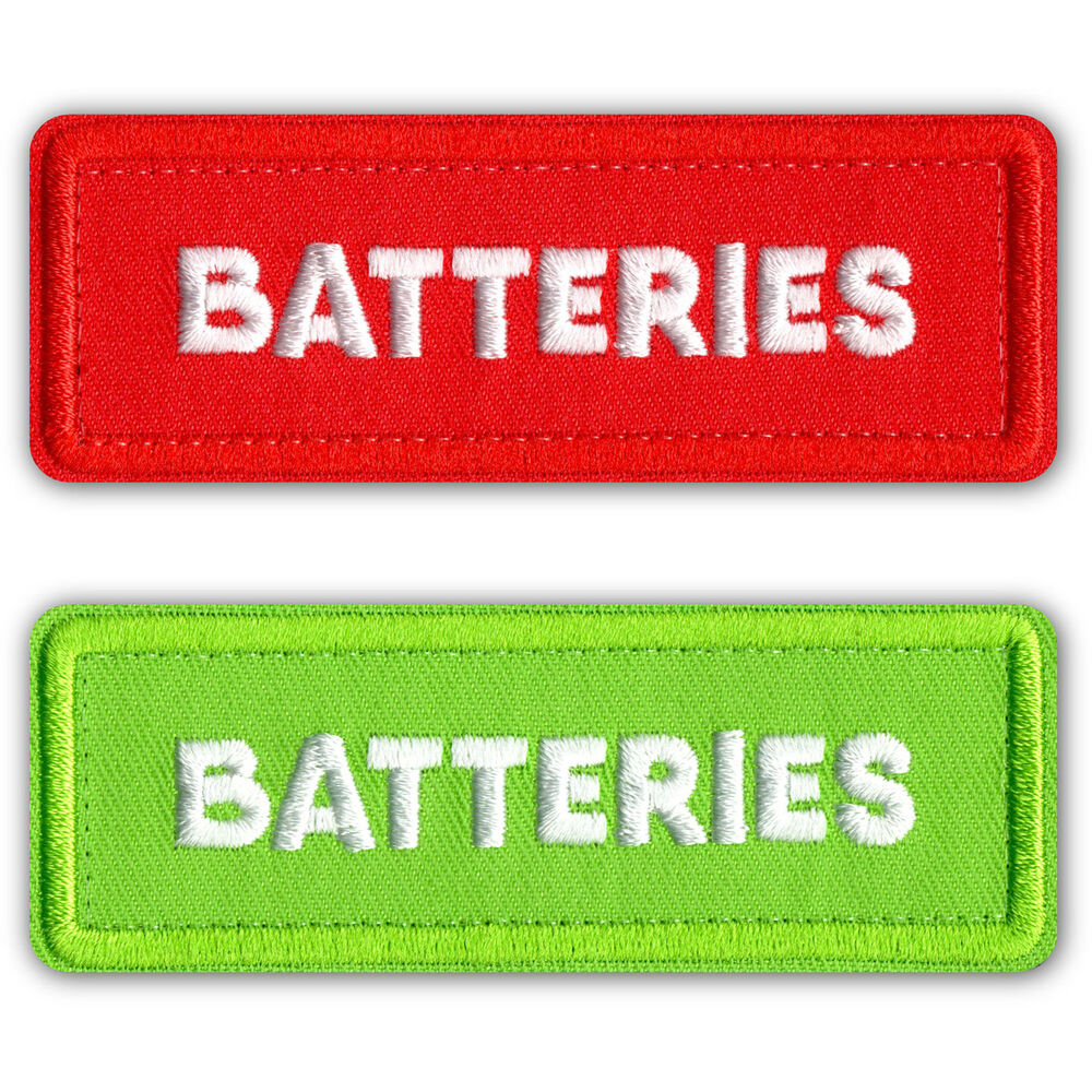 These Battery Patches (4-pack) from CRDBAG include two red patches and two green patches so you can easily label and identify which of your pouches hold fresh batteries versus depleted ones.