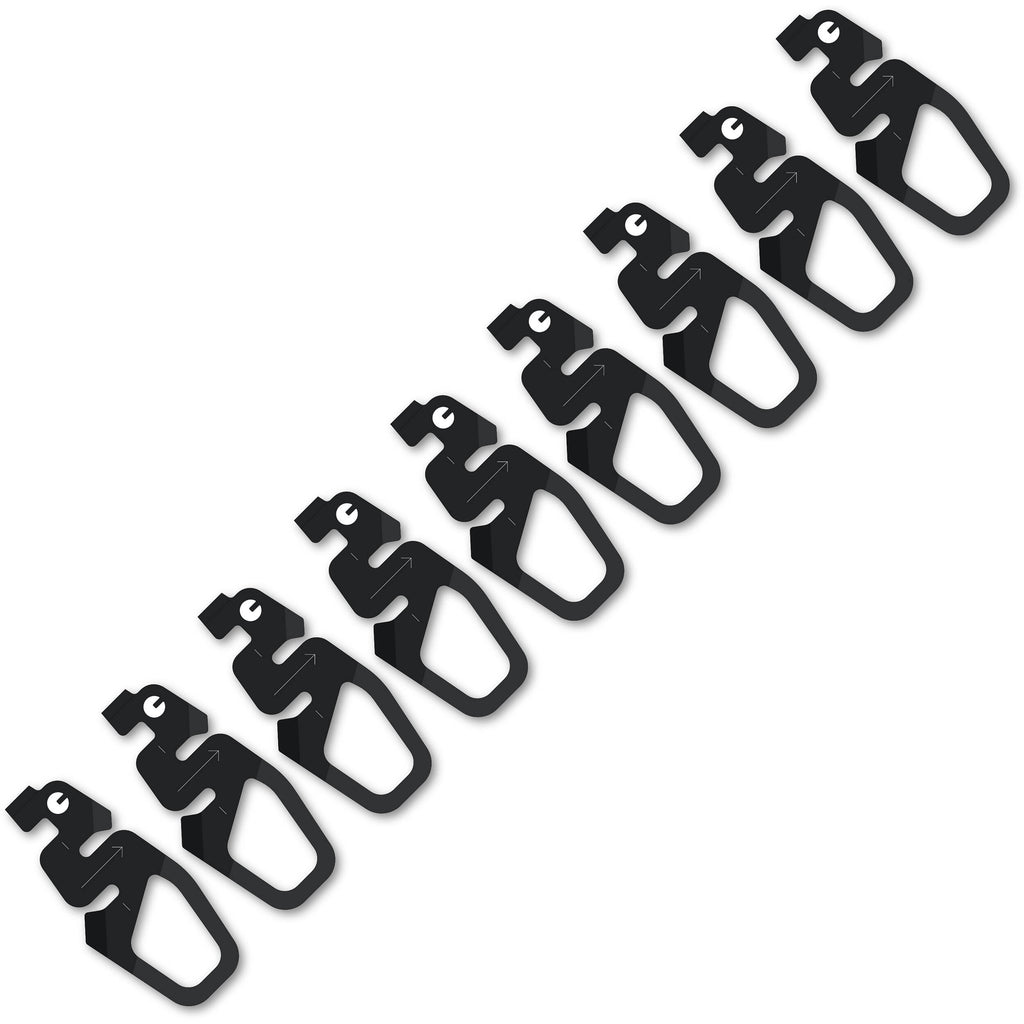 This is a set of 10 CRDHOOKS Mounting Hooks from CRDBAG for the tracks of the CRDWALL MKII modular wall mount system used for various equipment.