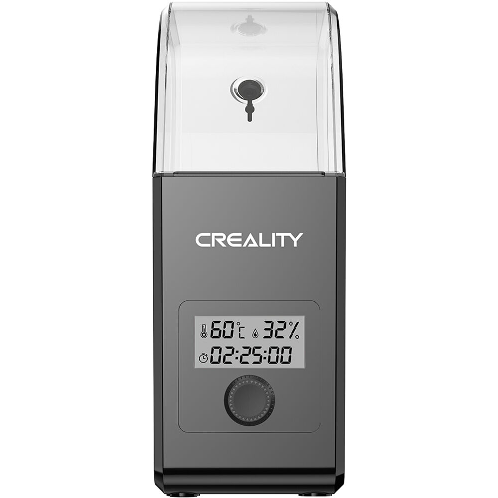 Keep your filament dry while printing with the Creality Filament Dry Box 2.0. 3D printing with wet filament will result in stringing, clogging, poor adhesion, and other issues, resulting in a less than ideal 3D print model. The dry box is designed to fit filaments with diameters of 1.75 and 2.85mm as well as materials, such as PLA, ABS, ASA, PETG, TPU, and more. This dry box provides real-time humidity monitoring via the front display. You'll be able to adjust the temperature between 113 and 149°F. The enclosed design and the built-in fan allows for 360° hot-air heating. Set the drying time up to 24 hours.