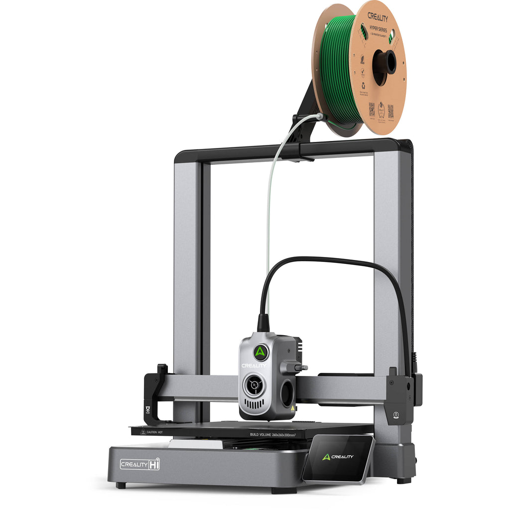 With the Creality Hi Combo Multi-Color 3D Printer, you'll be able to enjoy multi-color printing. With the included CFS, the Hi Combo can print up to four different colors. The Hi Combo can support up to 16 colors, when using a total of four CFS. Print via USB flash drive or Wi-Fi. The heated build plate features auto leveling. The open building area measures 10.2 x 10.2 x 11.8". With the Hi Combo, you can print 3D models with different colored parts without the need for extra painting.