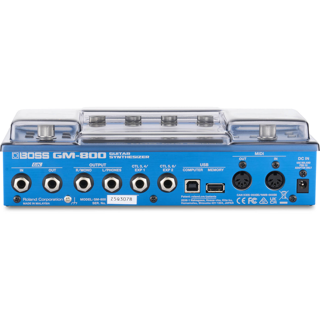 Protect the precious faders, switches, and knobs on your BOSS GM-800 with the GM-800 Cover from Decksaver, a lightweight yet durable cover that fits tightly over the BOSS guitar synth pedal while still accommodating cables. This cover delivers a cost-effective price whilst fully shielding delicate external and internal components from dust, liquids, and impacts with its polycarbonate shell.