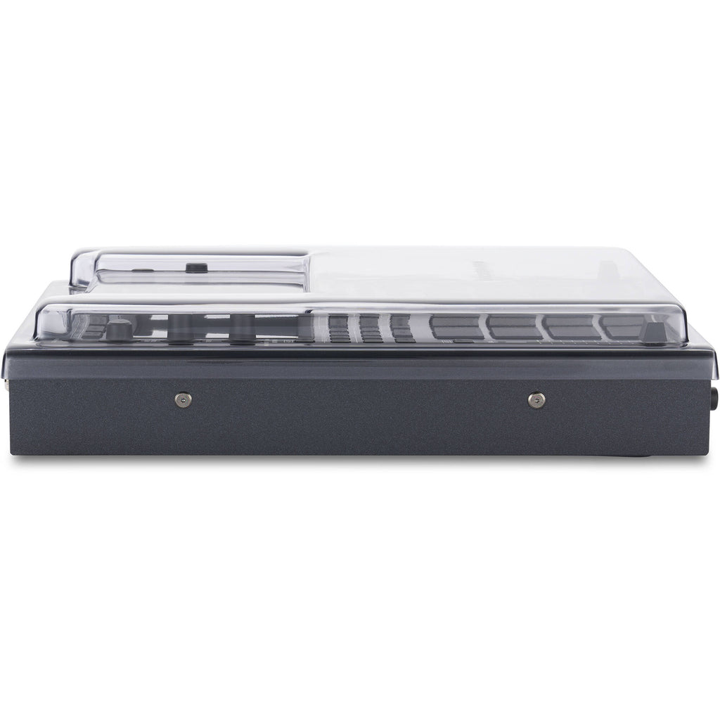 The cover is designed and molded at the company's factory in the UK and is made from durable smoked/clear polycarbonate. It shields delicate pads, knobs, screen, and internal components from damage at home, on the road, and in the studio. The slim profile ensures an easy fit straight into a flight or soft case for maximum protection during transportation.