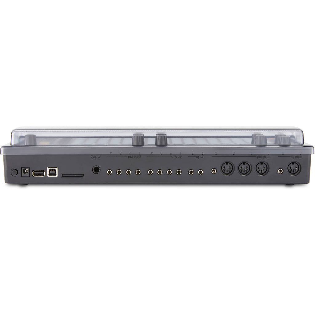 The Decksaver Squarp Hapax Cover features patented smoked/clear transparency material that protects the Hapax's faders, switches, and knobs in transport. It's made of durable polycarbonate for maximum protection. It offers easy removal for access to back-panel connectors. The cover measures 14.29 x 8.34 x 1.18".