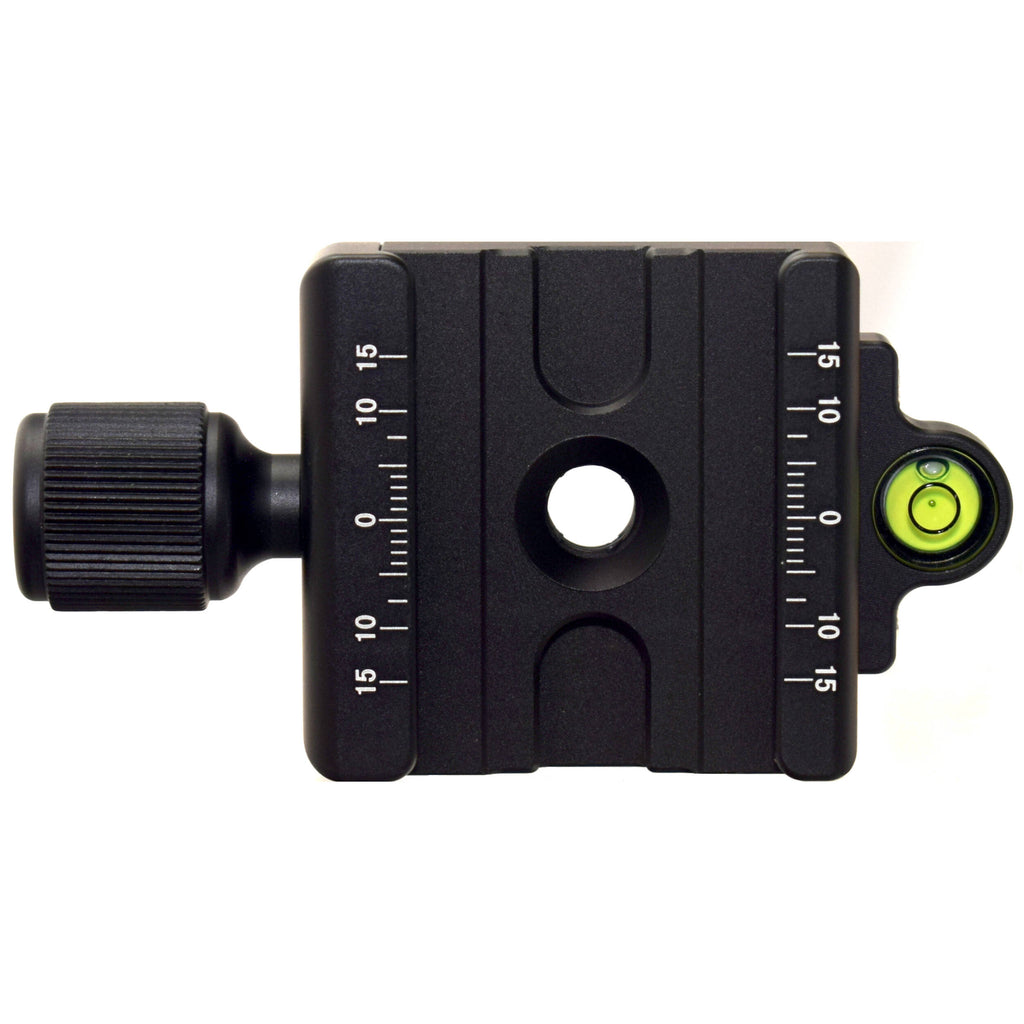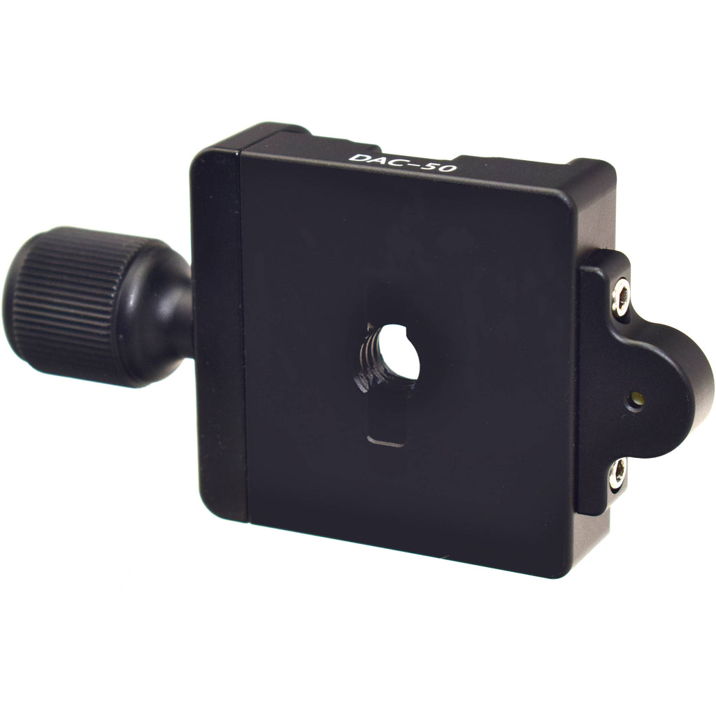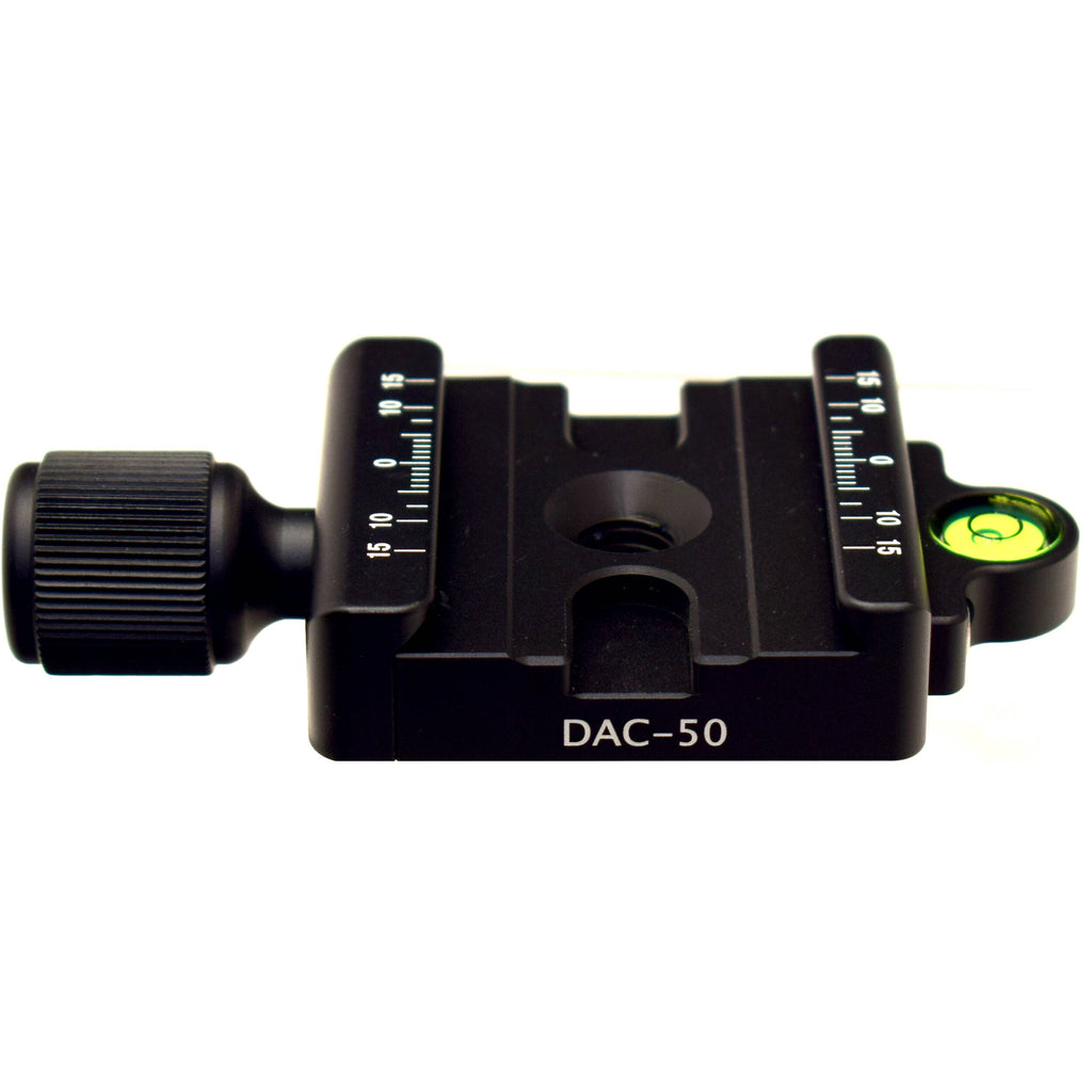 The 1.9" DAC-50 QR Clamp from Desmond is an Arca-type compatible quick release clamp. Made from aluminum, the clamp is 1.9" (50mm) long, and it has a removable bull's-eye bubble level. A numbered scale on both sides of the clamp allows for precise adjustments of your camera plate. The clamp has a 3/8"-16 thread and includes a 1/4"-20 bushing adapter, so it can be mounted on most tripods or tripod heads.