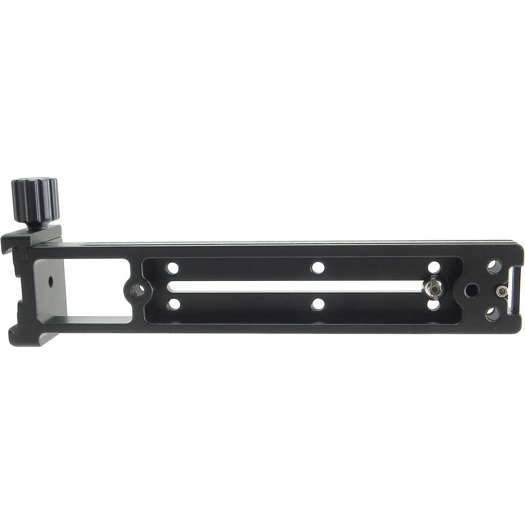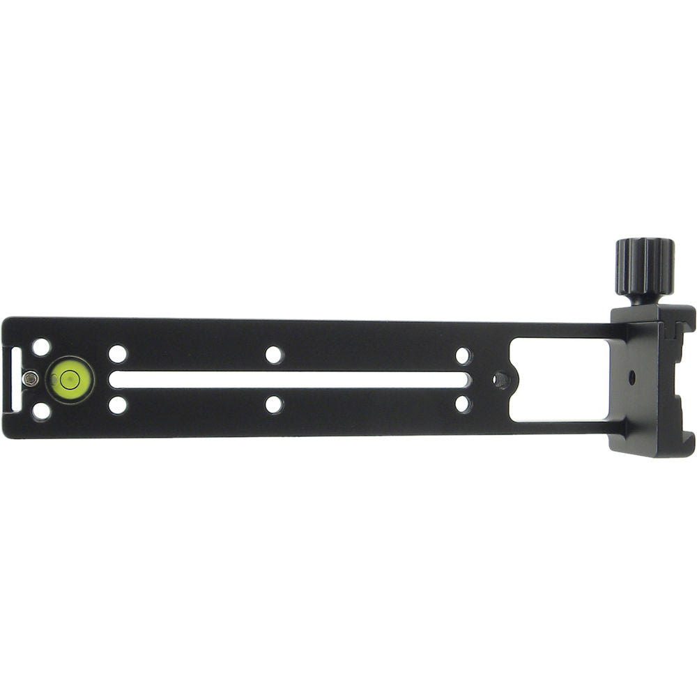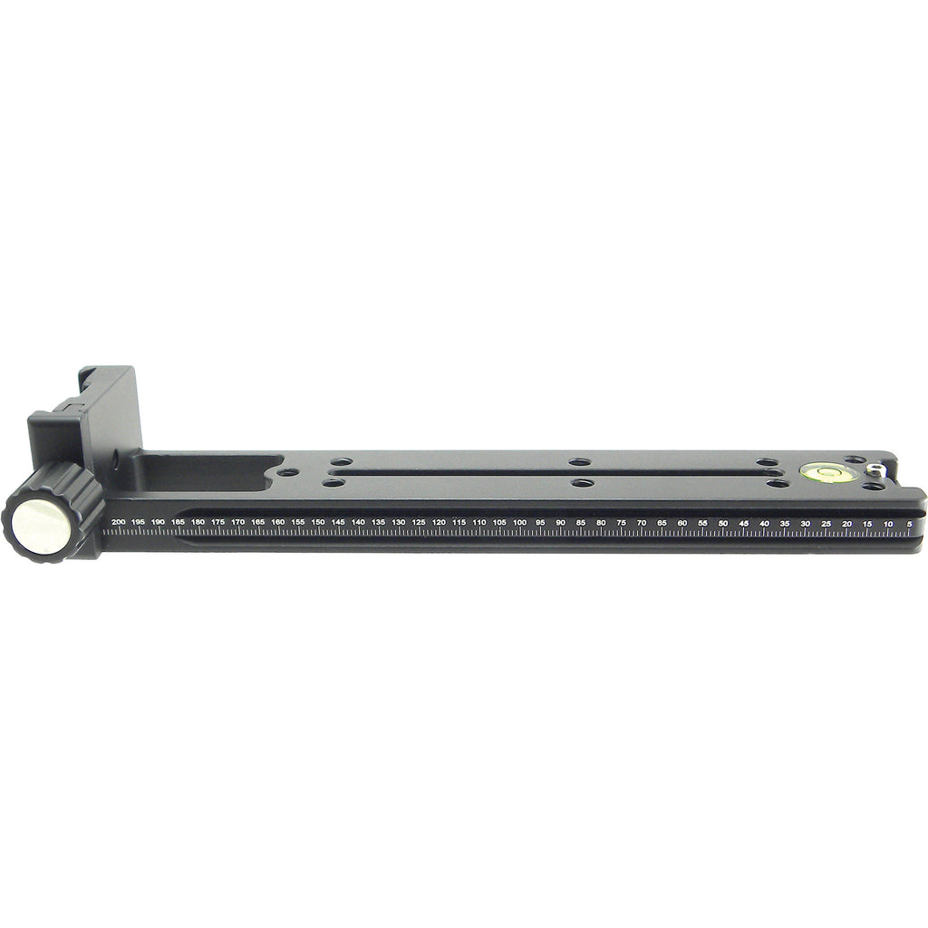 The DVC-220 220mm Rail from Desmond is a horizontal rail with an Arca-type compatible clamp for adding a vertical plate. The rail has dual dovetails, a built-in bubble level, strap slot, and a 1/4"-20 camera mounting screw.
