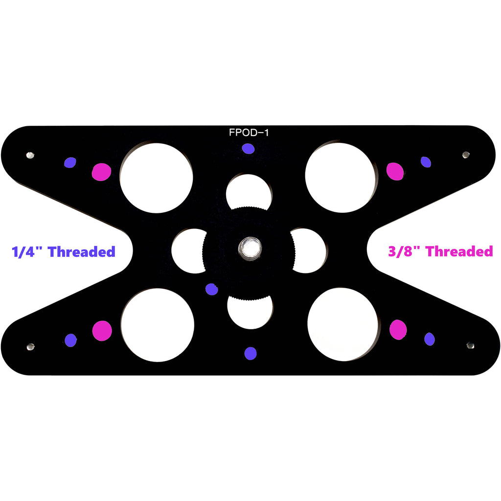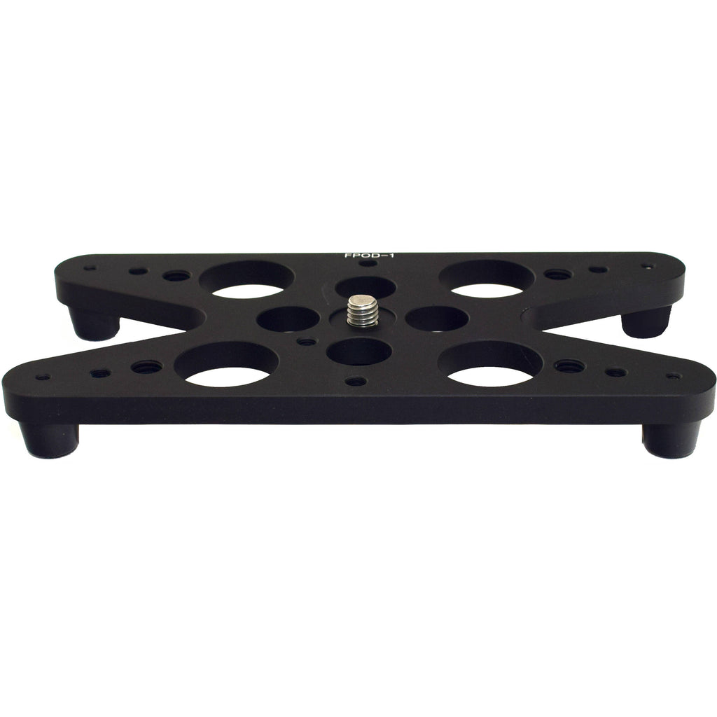 The FPOD-1I Tabletop Pod from Desmond is a tabletop base for ball heads and other tripod heads with a 3/8"-16 base. It can be used for positioning your camera on a table, desk, or even the floor for a low-angle perspective. The CNC-machined aluminum plate features removable feet, and has multiple 3/8"-16 and 1/4"-20 threaded sockets for adding a variety of accessories.